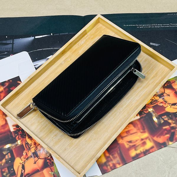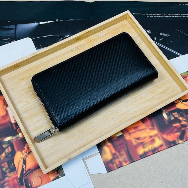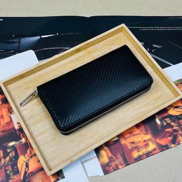艶感のある美しいカーボンレザーロングウォレット。