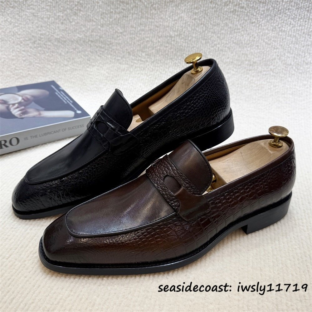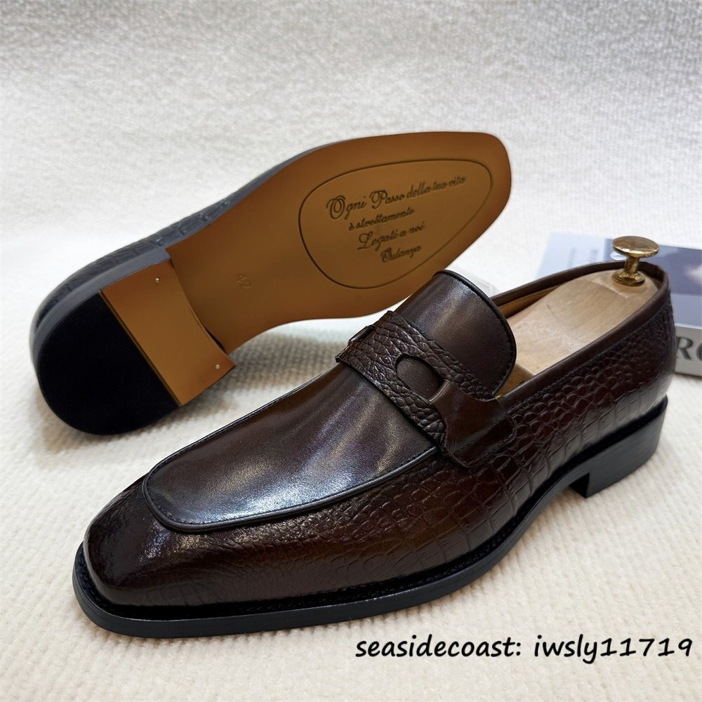 定価9万◆メンズシューズ 本革 レザーシューズ 職人手作り 彫り ビジネスシューズ 革靴 紳士靴 牛革 冠婚葬祭ローファー 珈琲色 27.5cm