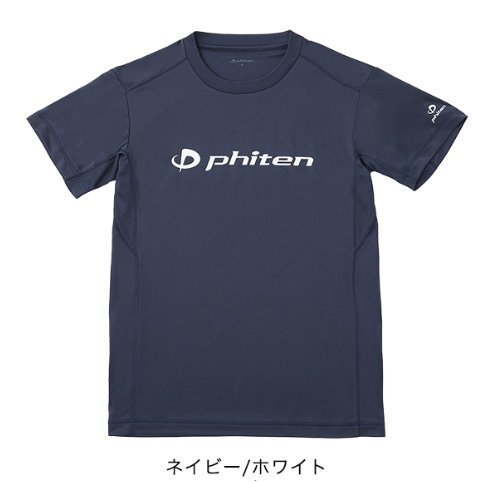 [ファイテン] RAKUシャツ 半袖 Tシャツ Phitenロゴ ネイビー/ホワイト XOサイズ