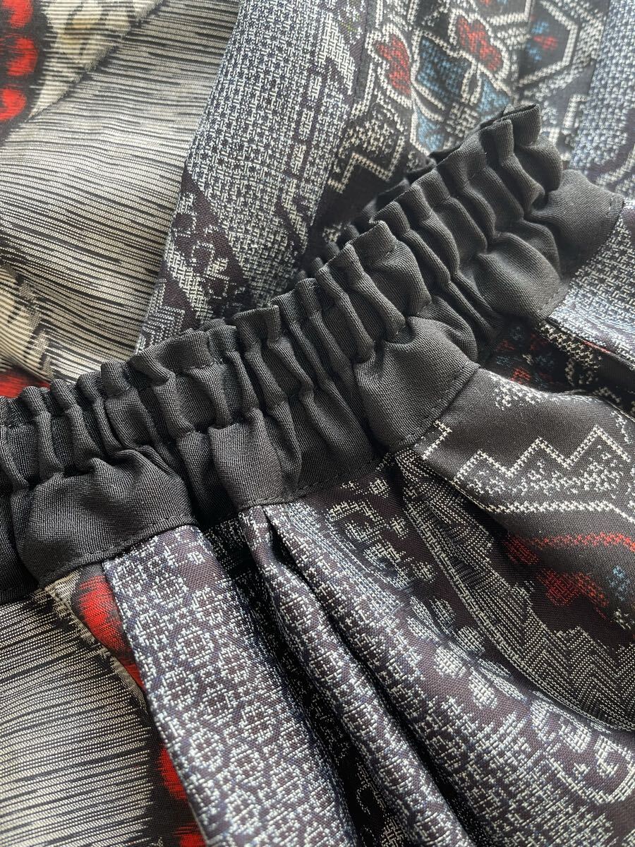 ★blue-sky/古布/着物リメイク/正絹・大島紬/パッチワークギャザースカート&黒紋付チュニック/ハンドメイド★