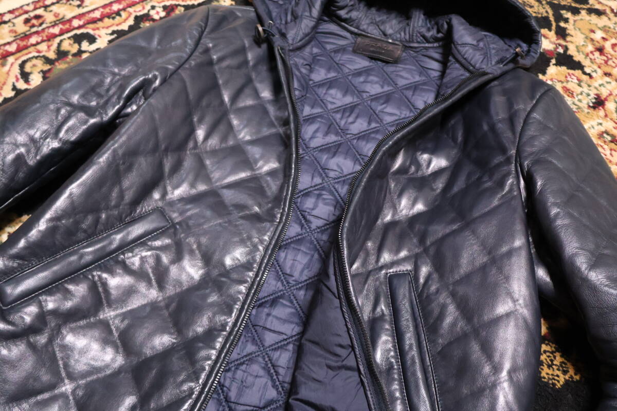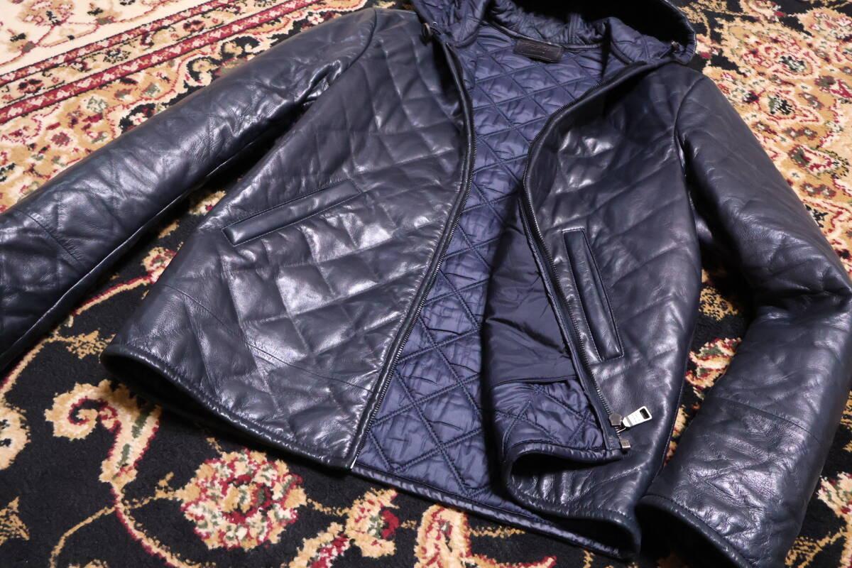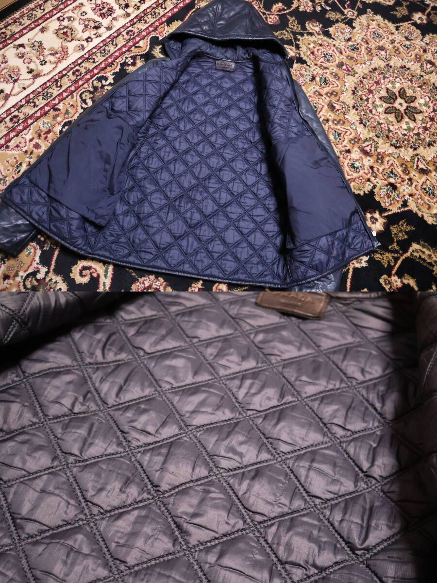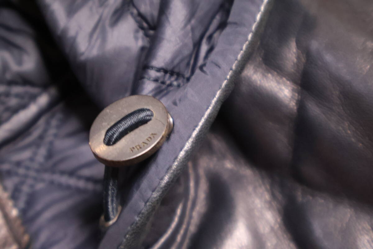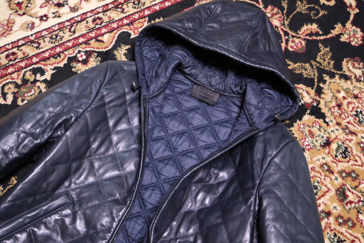 12100/ プラダ PRADA 80万↑『リッチでお洒落な大人のラグスポスタイル』 キルティングステッチナイロン裏地 中綿パファー保温 レザーパーカー ブルゾン
