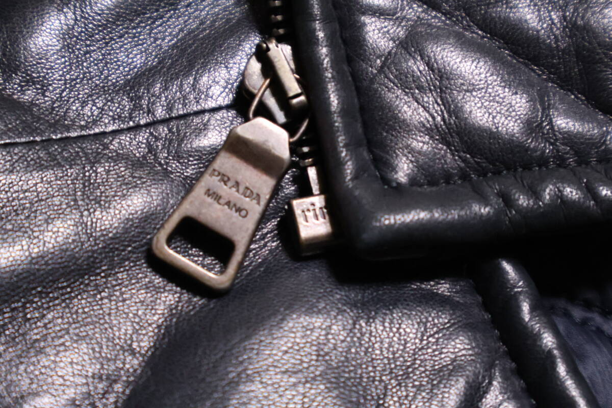 抜群の柔らかさと、高級感ある艶感にしなやかなタッチが魅力のラムスキンレザーを使用したプラダのレザーパーカ。