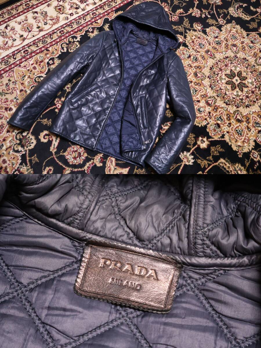 12100/ プラダ PRADA 80万↑『リッチでお洒落な大人のラグスポスタイル』 キルティングステッチ 中綿パファー保温 レザーパーカー ブルゾン
