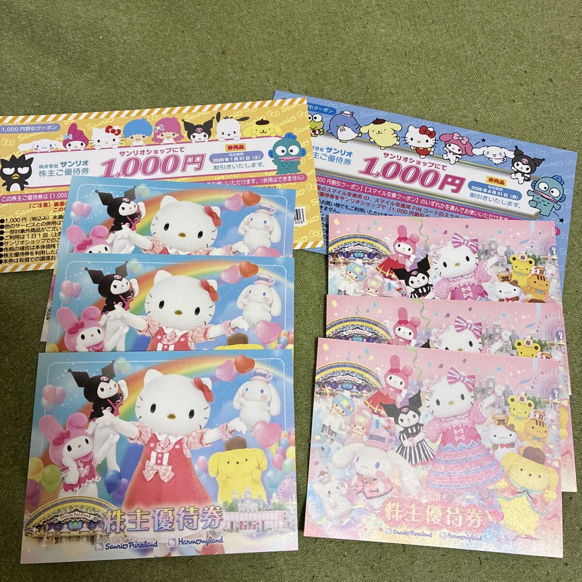 サンリオピューロランド/ハーモニーランドの株主優待券6枚と1,000円割引券2枚