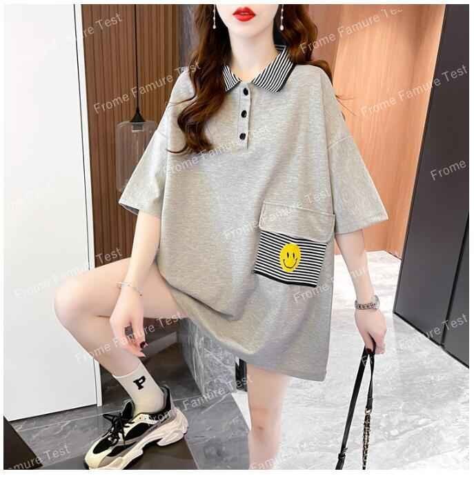 韓国風 女夏新しい 大きいサイズ半袖Tシャツ 気質ファッションTシャツ 学生Tシャツ 2XL グレー
