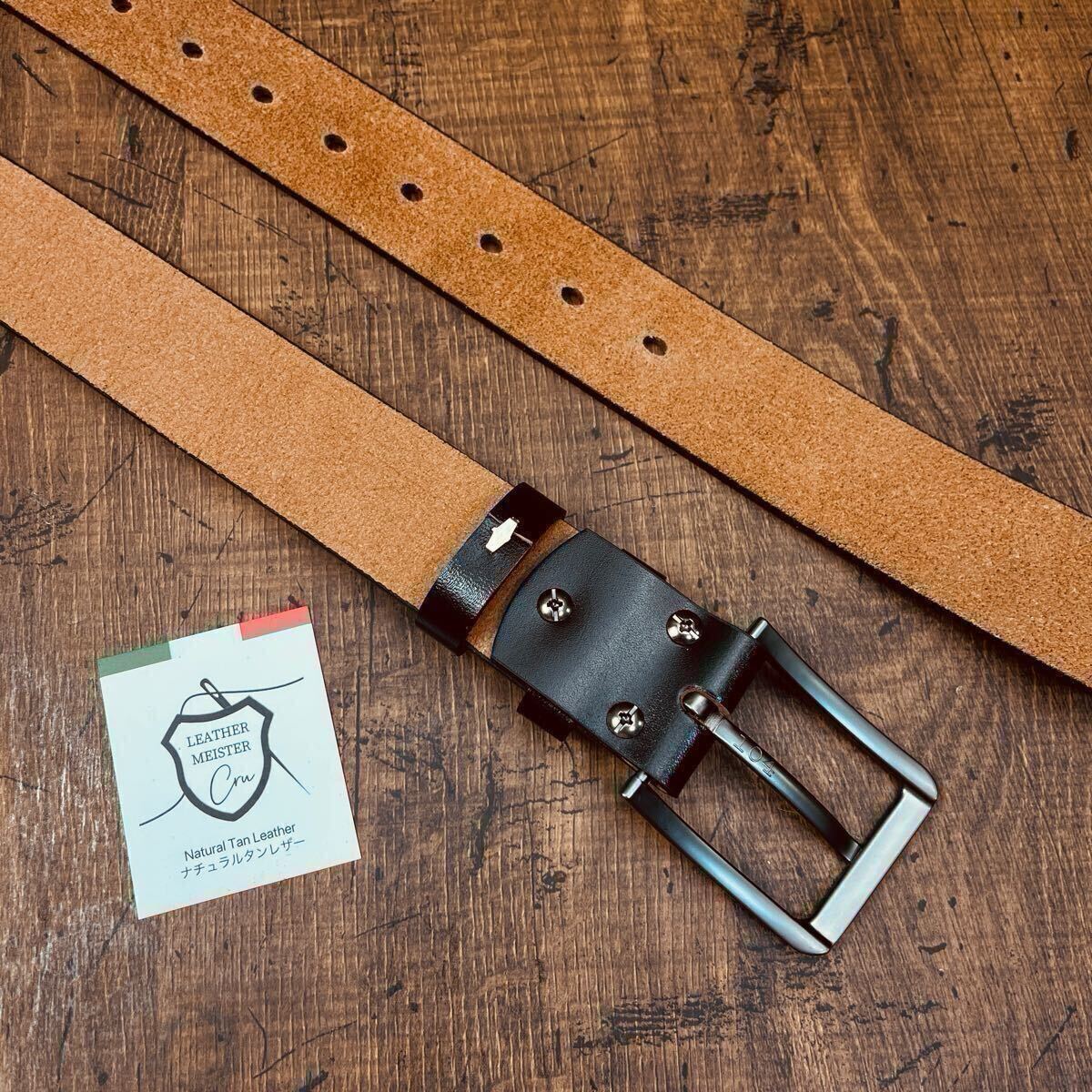 本革の醍醐味であるエイジングが存分に楽しめるナチュラルヌメ革を使用したレザーベルトです。使えば使うほどに味が出てきます。しっかりとした厚みで作られた重厚なガンメタブラック色のバックルが高級感を与えます。