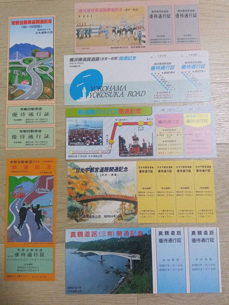 【日本道路公団】常磐自動車道 真鶴道路 横浜横須賀道路 新湘南バイパス 日光宇都宮道路 開通記念優待通行証 7種