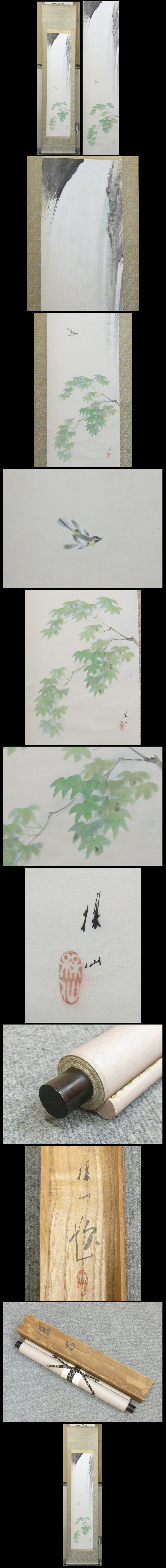 【平井楳仙】1889-1969 日本画家。京都生。名は秀三。京美工卒。竹内栖鳳に師事。 文展に入選を重ね、活躍する。入江波光・榊原紫峰らと桃花会を結成。 戦後は後援会の楳推会を中心に制作活動を行った。 帝展委員。新文展無鑑査。昭和44年(1969)歿、80才。 ★商品サイズ★ ■掛軸 191×43cm ■作品 131×30.5cm ★商品の状態★ 作品は概ね良い状態です。 表具に少しのしみ汚れがあります。 ご承知のうえご入札をお願いします。 時代など詳しくは画像にてよく確認のうえでご検討いただければと思います。 どうぞよろしくお願いいたします。 |