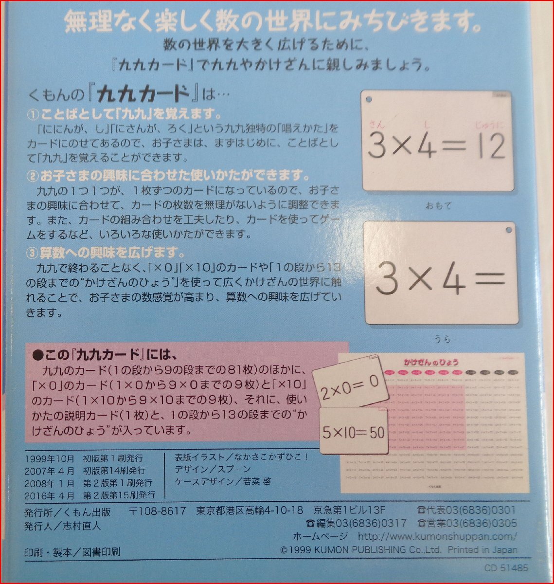Bana8◆KUMON/くもん 九九カード 幼児から 知育 数・数字 BP-20②