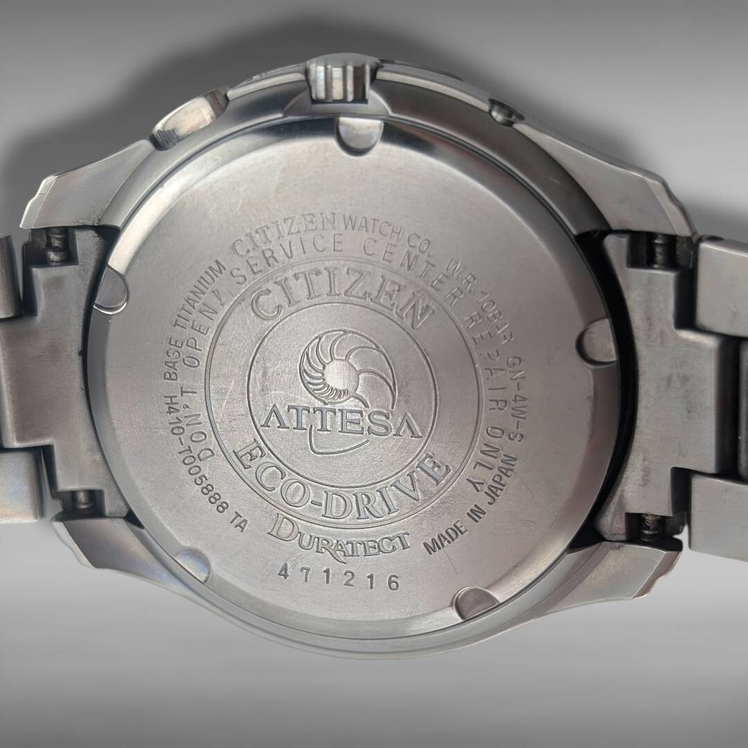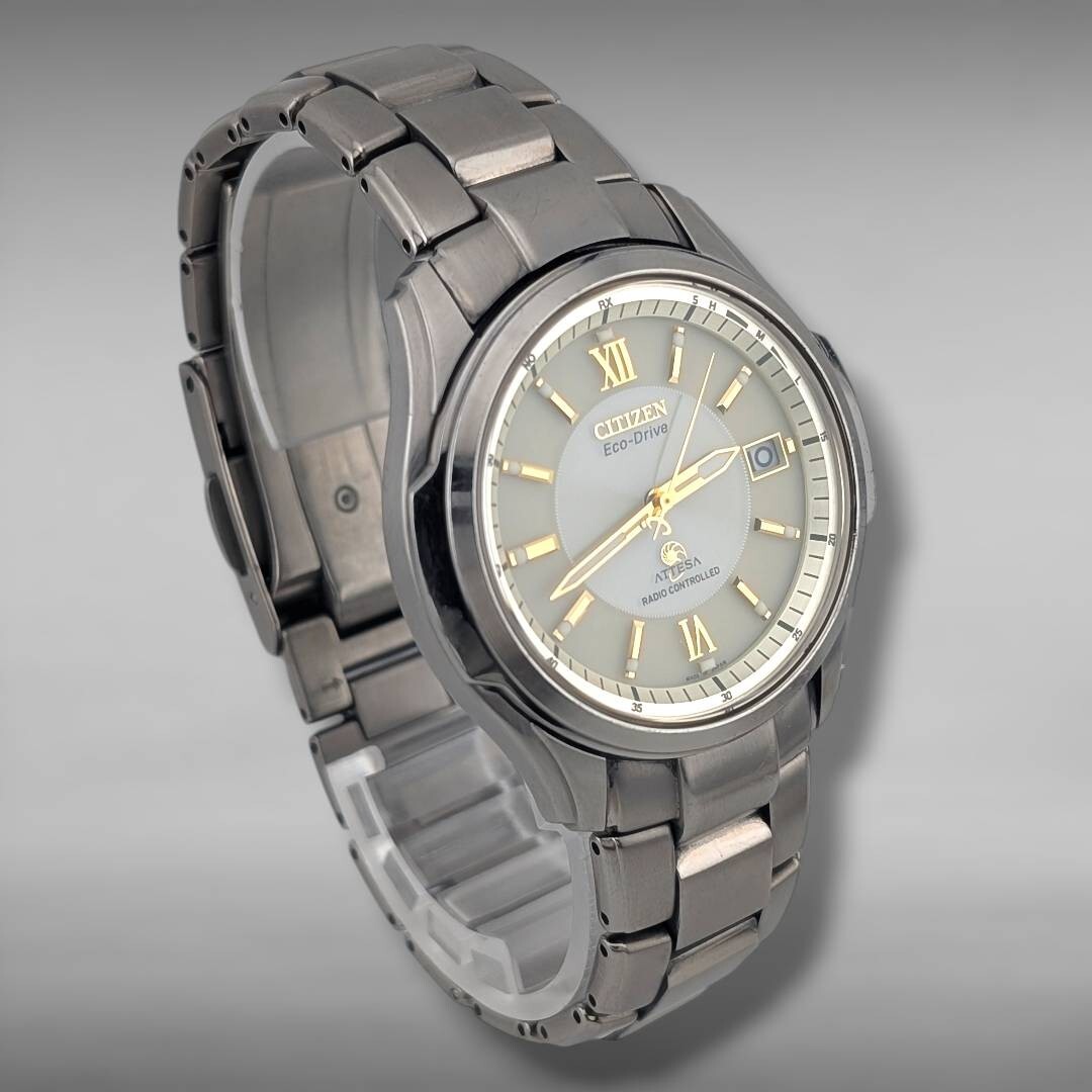 【稼働】CITIZEN シチズン ATTESA アテッサ EcoDrive エコドライブ アイボリー文字盤 H410-T00588 ソーラー電波 チタン メンズ 腕時計