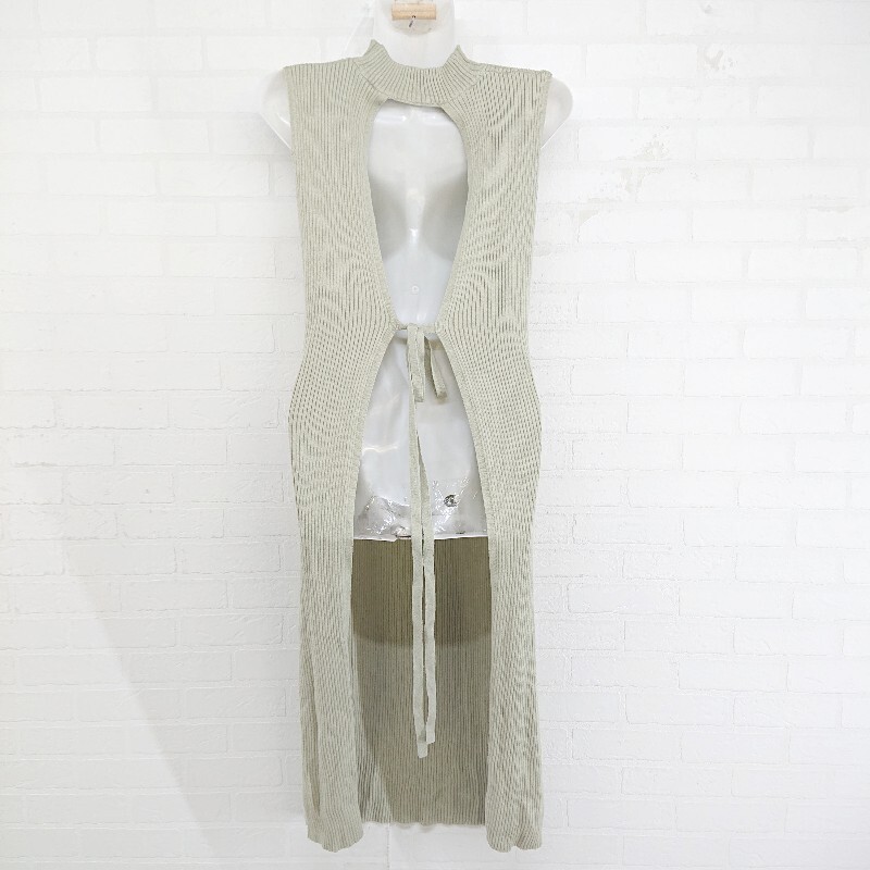 ◇ MERCURYDUO マーキュリーデュオ リブ ノースリーブ ロング ニット セーター サイズF グリーン系 レディース E