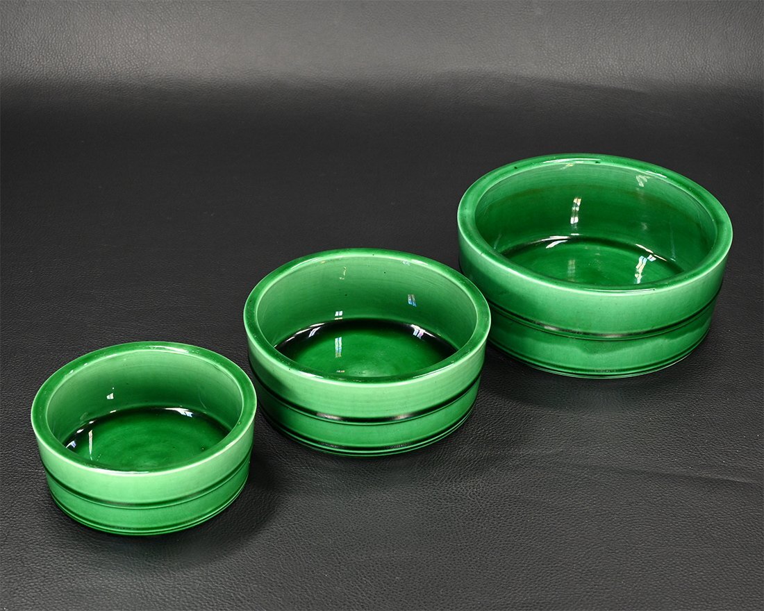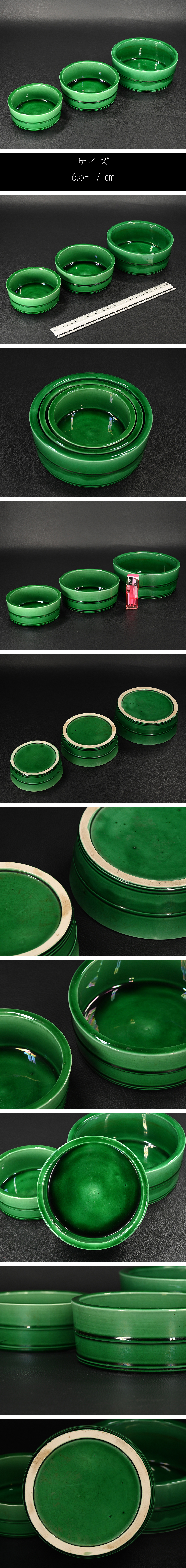 【永】c049【兵庫県の図書館や博物館の館長を歴任された歴史研究家遺族委託品】江戸後期 珉平焼 緑釉三つ鉢 綺麗な作品