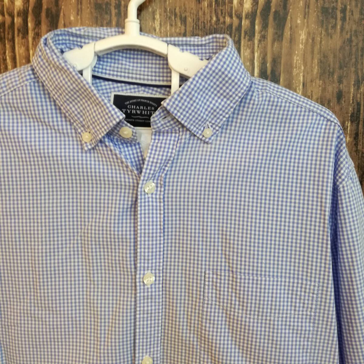 中古 アメリカ古着 CHARLES TYRWHITT チャールズティアウィット 長袖シャツ メンズ Mサイズ 青 ブルー チェック カジュアル 送料無料