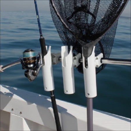 バウレールやキャストレールなど、Φ22-25mmのパイプに取付可能な樹脂製のレール用ロッドホルダー
