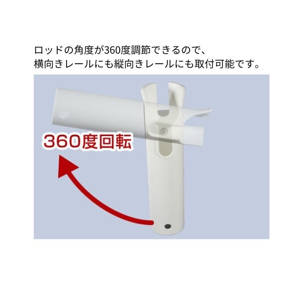 ロッドの角度が360度調節できるので、横向きレールにも縦向きレールにも取付可能