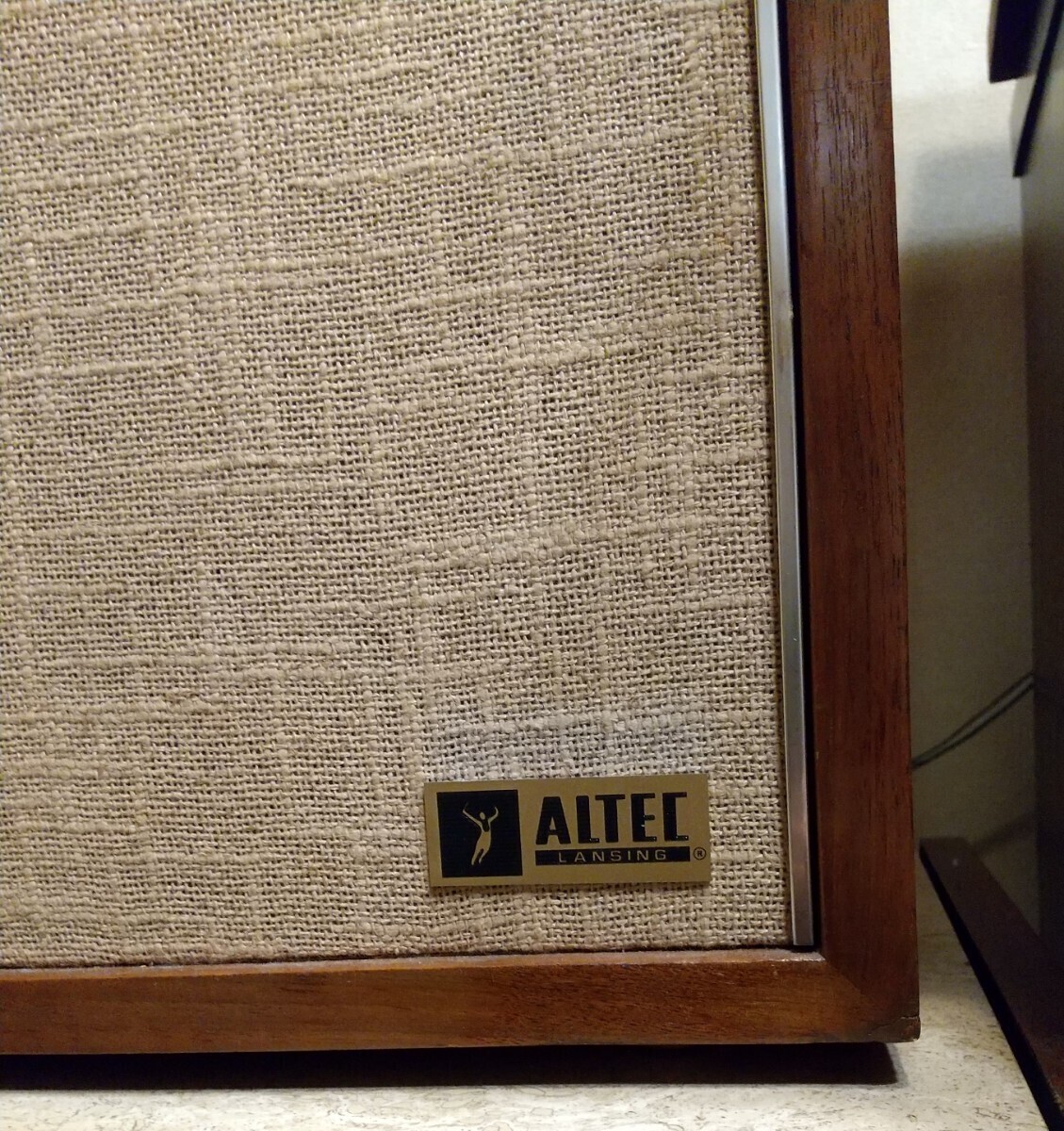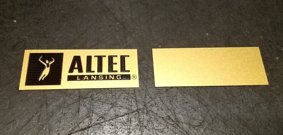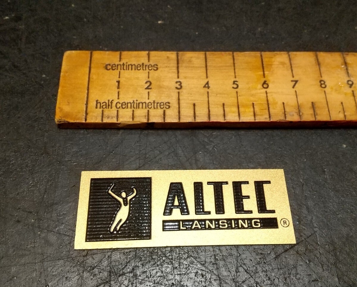 材質はアルミ製で、真鍮色のベースプレートに黒い塗料で分厚くALTECのロゴが書かれており、重厚な仕上がりになっています。