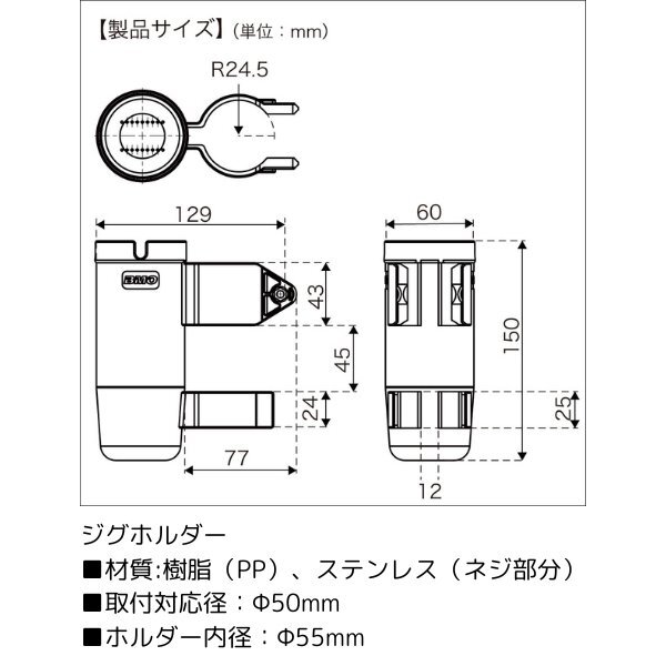 一般的な筒状ロットホルダーに簡単に取付可能!ロッドホルダーやロッドスタンドに装着するジグホルダーです。