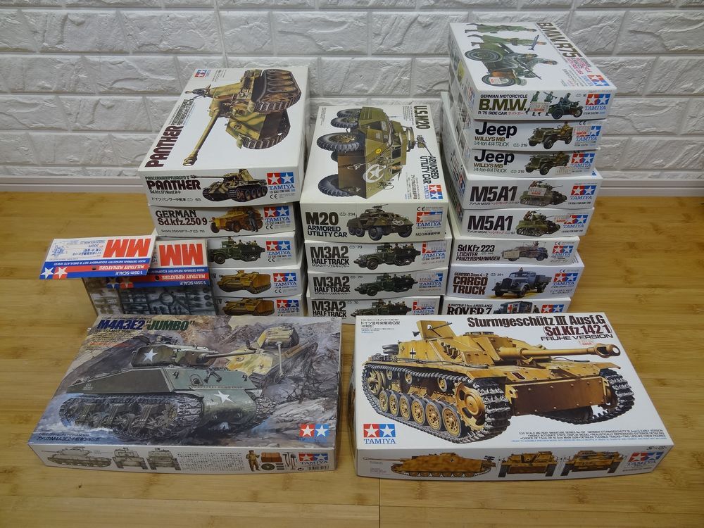 | ご覧いただき、ありがとうございます。 商品情報・発送方法等を必ずご確認の上、ご入札をお願い致します。 【商品情報】 説明書欠品とパーツ欠品未チェックのジャンク品となります。 ご理解頂ける方のみご入札をお願い致します。 TAMIYA/タミヤ 1/35 未組立 プラモデル 19個まとめ ミリタリー 戦車 車両 【付属品】 画像のものが全てです。 【状態】 未組立品/中古品/ジャンク品となります。 1つ1つの細かな確認/専門的な検品等はしておりません。 ※説明書が欠品しているものがあります。画像に無いものは欠品となります。 ※パーツの欠品の有無は分かりかねます。 中袋は未開封かと思います。外から見る限り明らかな破損は無いように思いますが、中古品の為 保管に伴う傷みなどがある可能性もありますのでご了承下さい。 (細かな確認はしておりませんので、ランナーからパーツが外れている・袋が開いている等がある可能性もありますのでご了承下さい。) 未開封と思われるものが2個あります。未開封と思われるものは開封しての確認はしておりません。 箱には、キズ・スリキズ・汚れ・へこみ・値札シール・日焼け・経年劣化等の傷みがあります。 ジャンク品となります。品物に欠品・不良などがあった場合でも保証等はできかねますのでご了承下さい。 画像の状態でのお渡しとなります。 ノークレームノーリターンでお願い致します。 個別梱包はせず、まとめて箱に入れての発送となりますのでご了承下さい。 ばら売りは対応できかねます。 当方、プラモデル等に詳しくない為 ご質問にお答えできない場合があります。 状態説明はあくまで主観です。状態についてはなるべく記載しておりますが、まれに 見落としがある場合もございますので、必ず画像でのご判断をお願い致します。 画像に写り切らない細かなキズ等がある場合もあるかと思います。 中古商品の為、キズ、汚れ、動作不良、破損等がある可能性もございます。 中古商品ですので神経質な方は入札をお控え下さい。 ジャンク品ということをご理解いただいた上でのご入札をお願い致します。 【発送方法】 ゆうパックでの発送とさせて頂きます。 送料につきましては、落札者様のご負担にてお願い致します。 発送までに、若干のお時間を頂く場合がございます。 ご了承頂きますよう、よろしくお願い致します。 輸送が原因による故障・トラブルに関しては一切の責任を負いかねますので、ご了承頂きますよう、お願い致します。 | |||
