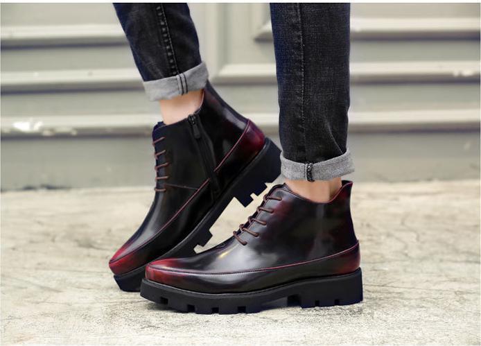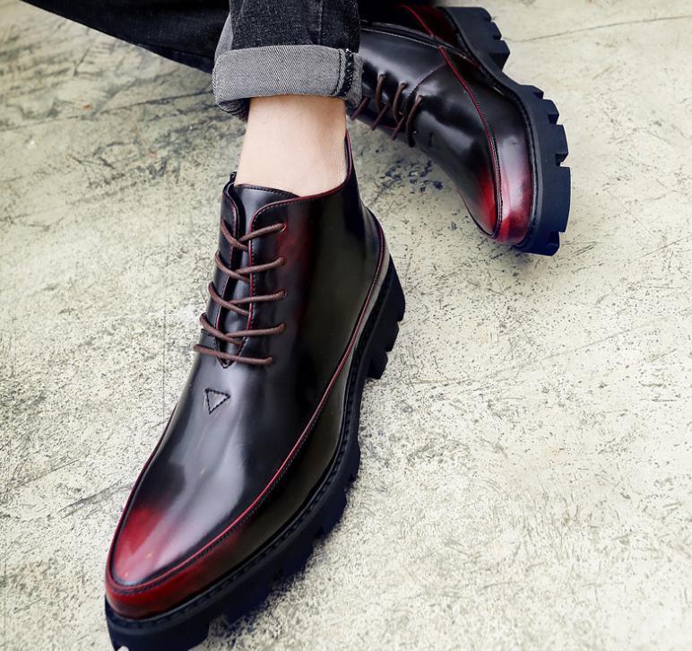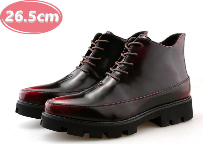 サイドジッパー付き メンズ ビジネス レザー シューズ レッド 26.5㎝ 革靴 靴 カジュアル 屈曲性 通勤 軽量 インポート品【n138】