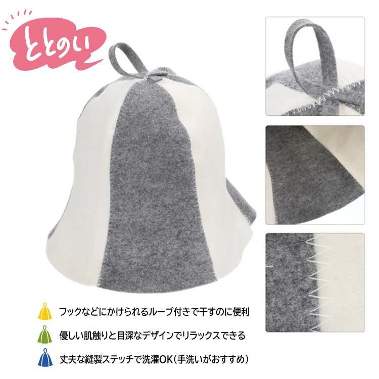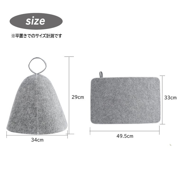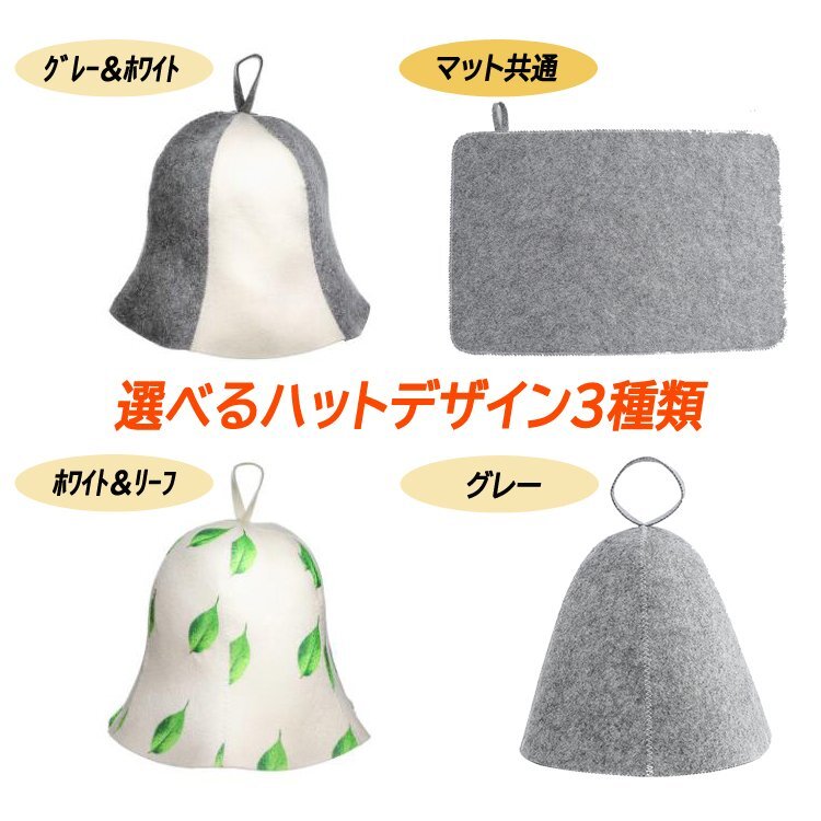 ◆サウナハット+マット saunaセット 選べる3色 フリーサイズ サウナ帽 サウナキャップ のぼせ防止 髪のダメージケア 折りたたみ テントサウナ サ活 サウナーに【グレー&ホワイト】SAUH2330