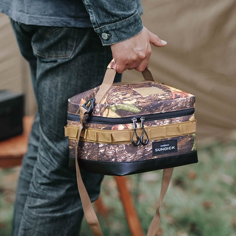 丈夫なオックスフォード布を使用したアウトドア用保冷バッグ。