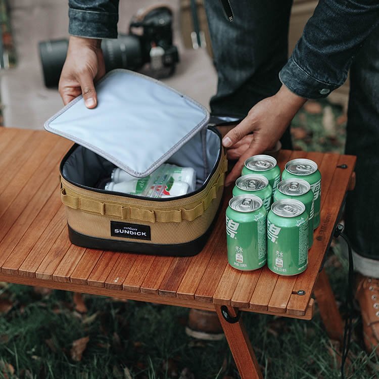 内側は厚みのある断熱素材で、ビールやジュース、食品などを保冷できます。