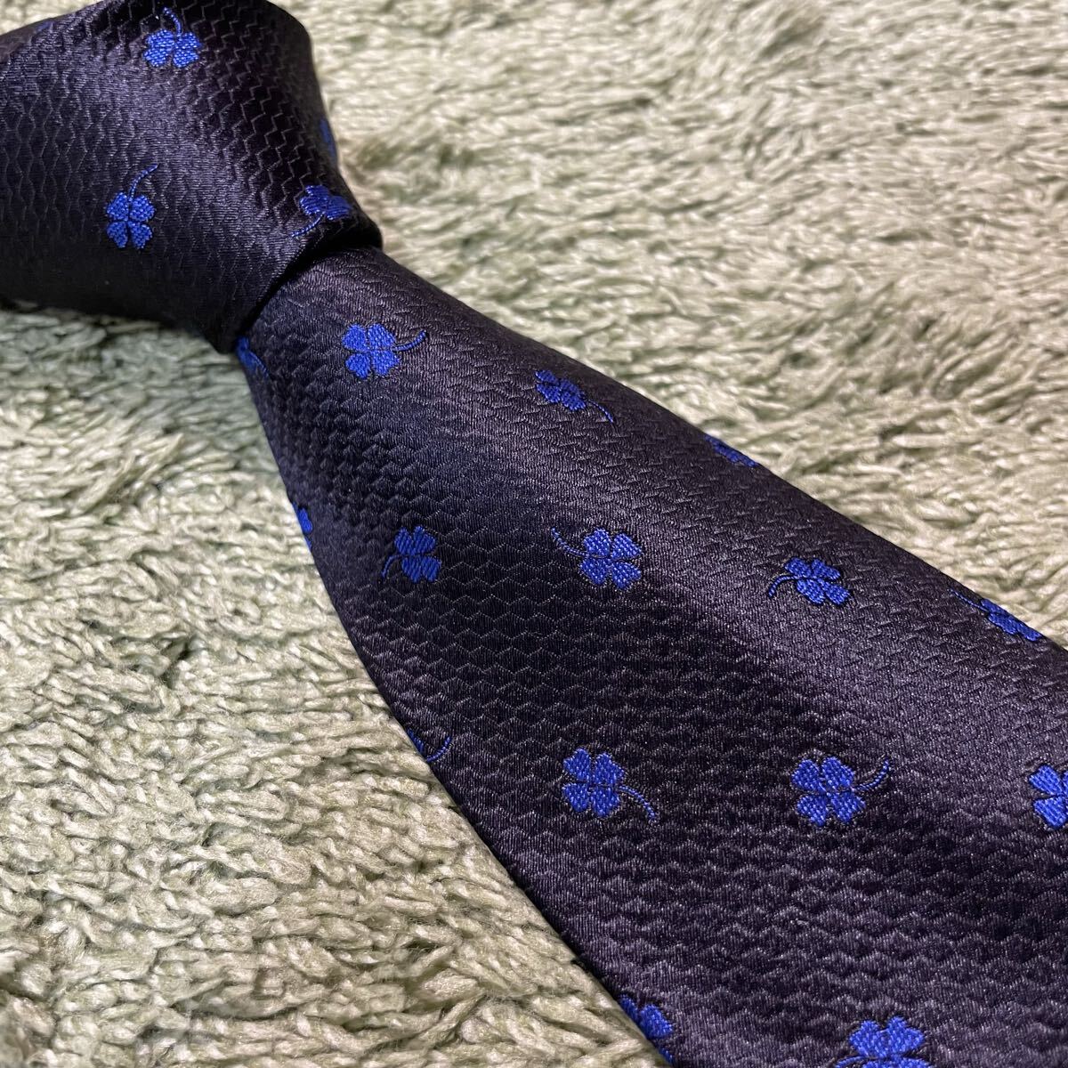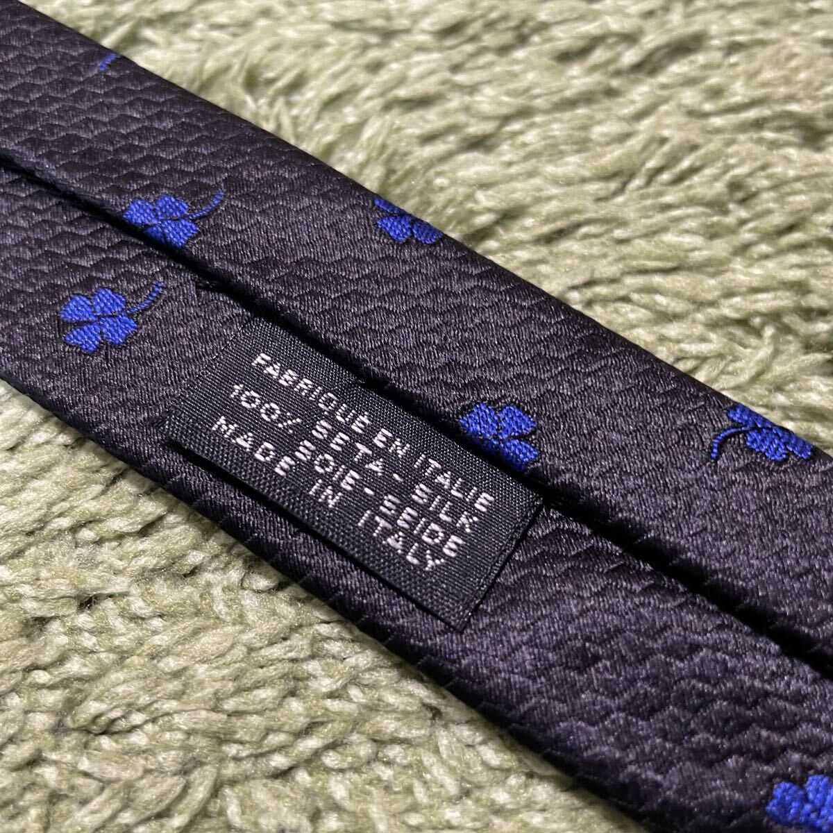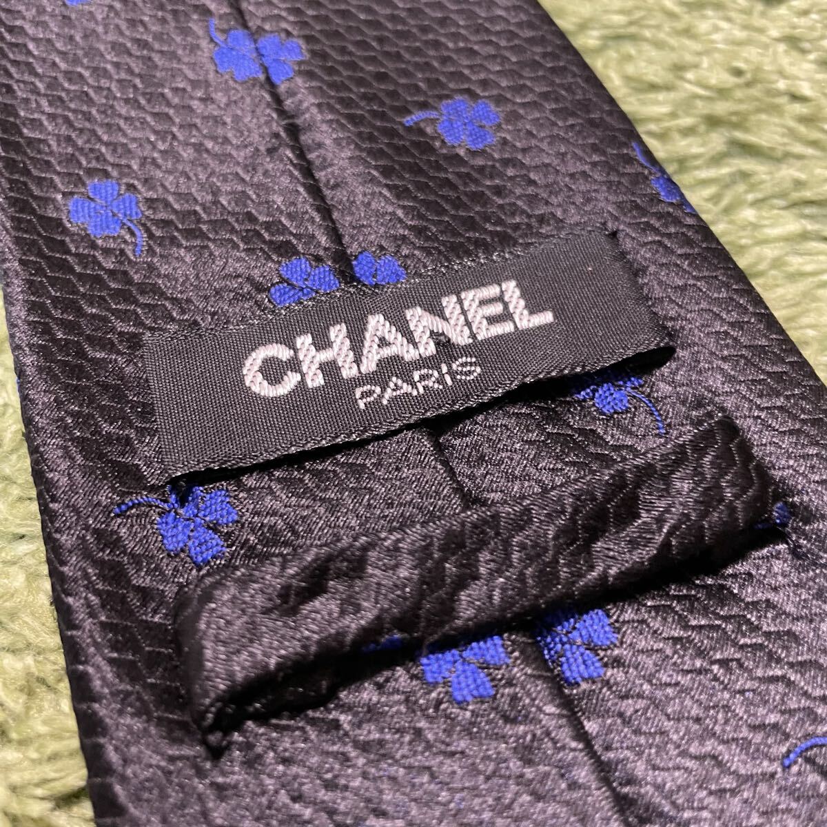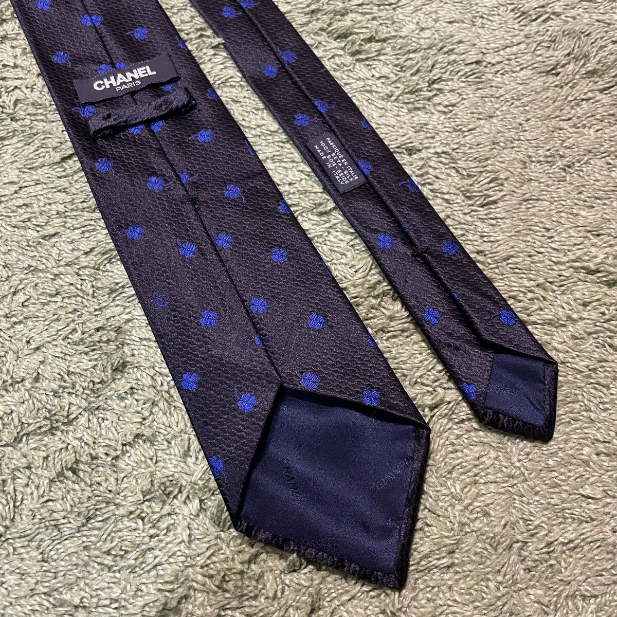 1円スタート! 未使用級 CHANEL シャネル ココマーク クローバー 総柄 シルク100 ネクタイ ブラック イタリア製 ビジネス レギュラータイ