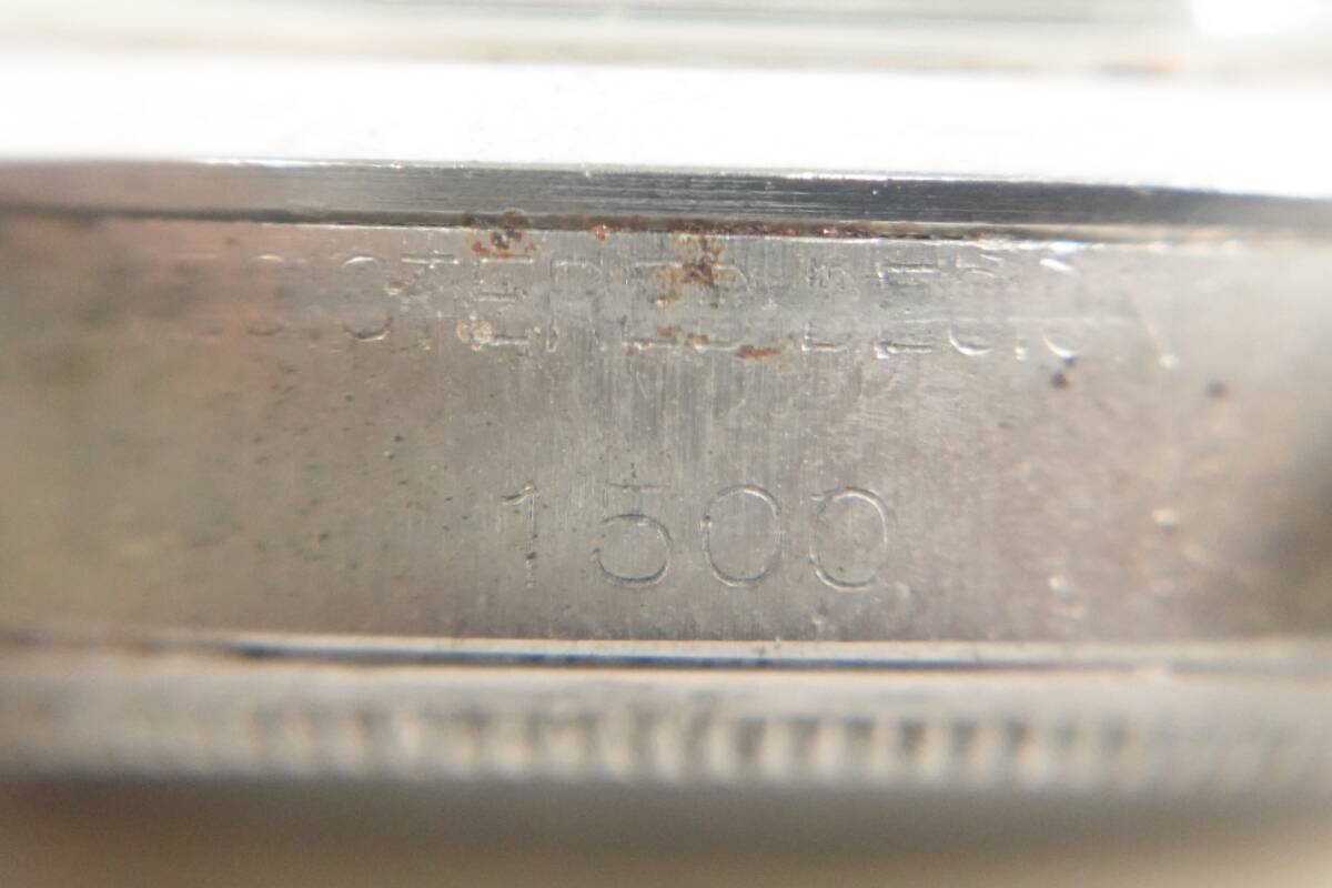 ブランド名:ROLEX 商品名:腕時計 型番:1500 シリアル:不明(バネ棒固着の為) ベルト:純正 腕周り:画像にてご確認下さい。 総重量:画像にてご確認下さい。 サイズ:画像にてご確認下さい。 ムーブメント:自動巻き 付属品:無し 動作:稼働している確認ができました。 リューズを回して時間調整確認できました。 リューズを24時間回して日付の変更は確認できました。 その他の操作は未確認となります。 長時間の動作確認は行っていないため、日差含め正常な動作かは分かりかねます。 ※あくまでも検品時の動作となりますので予めご了承下さい。 状態:譲り受けた商品の為、購入時期や使用頻度など詳細は分かりかねます。 ベルトにゆるみがございます。 裏蓋が硬直している為、開けれません。 中古品の為、フェイスや外観に傷や汚れが見受けられます。 素人の為、ご質問いただいても回答できない場合がございますが、 画像を追加致しますので、欲しい写真があった場合ご質問頂ければと思います。 神経質な方のご入札はお控え下さい。目視でのご確認となります。 商品の状態に関しては画像にてご判断下さい。 ※オーバーホール歴は不明でございます。 ※裏蓋を外した画像がない商品は、裏蓋を外して内部の確認は出来ておりません。 ID:0316522025-9181-03 弊社はインボイス登録事業者です。 登録番号:T8370001039877 ※※入札前に必ずお読みください※※ 説明文をよくお読みの上ご入札下さい。 画像に写っているものが全てになります。 商品の重さを量っているものに関しては多少の誤差がありますので、ご理解下さい。 商品の状態に関してはご自身でご判断の上、ご入札下さい。 あくまでも主観に基づく感想です。状態判断は画像にてお願い致します。 商品に対しどちらの情報が欲しいか分かりかねる部分もございますので、落札前にご質問頂ければと思います。 中古品の為、神経質な方のご入札はお控え下さい。 ご入札後の入札取り消しは出来かねます。 専門知識がなく、ご質問いただいても回答できない場合がありますが 気になる点がある方は入札前にご質問下さい。 素人による検品の為、見落としている場合もございます。 ご了承下さい。 ノークレーム・ノーリターンでお願いします。 | |||