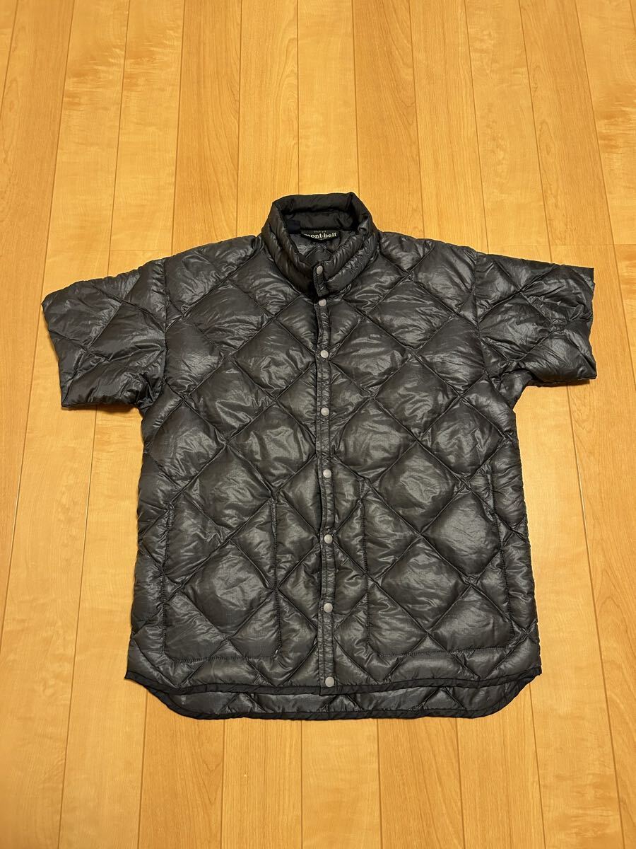 良品☆mont-bell/モンベル JAPANサイズM 超軽量やや中肉厚.ダウンジャケット.希少半袖型 ダイヤキルティングリップストップナイロン防寒