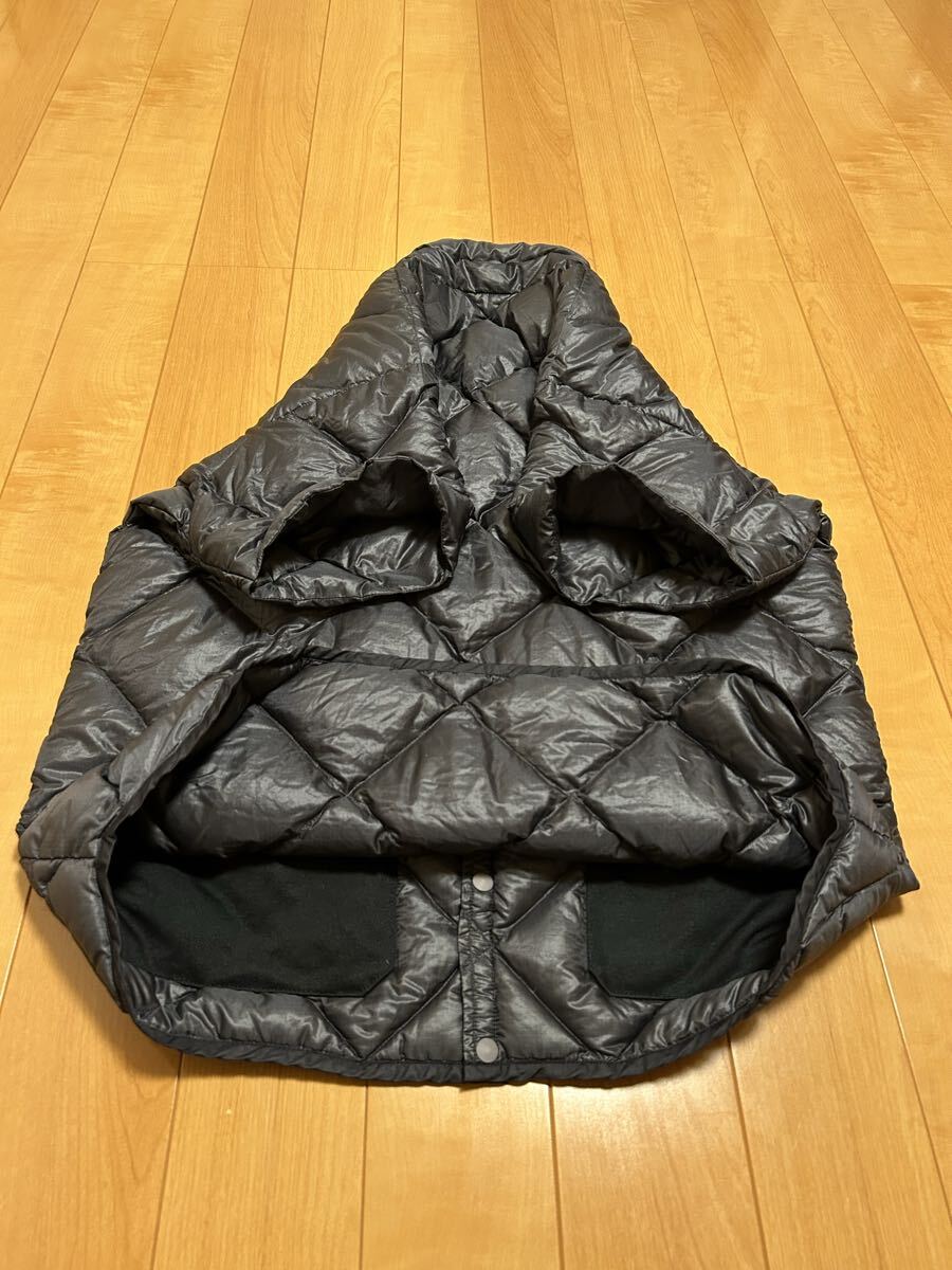 【お色・素材】・・・黒に近いチャコールダークグレー/表地 ナイロン100%/パリステックエアライト 、裏地 ナイロン100%/パリステックエアライト 、中わた ダウン90% フェザー10%