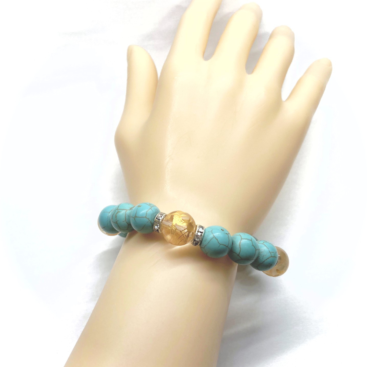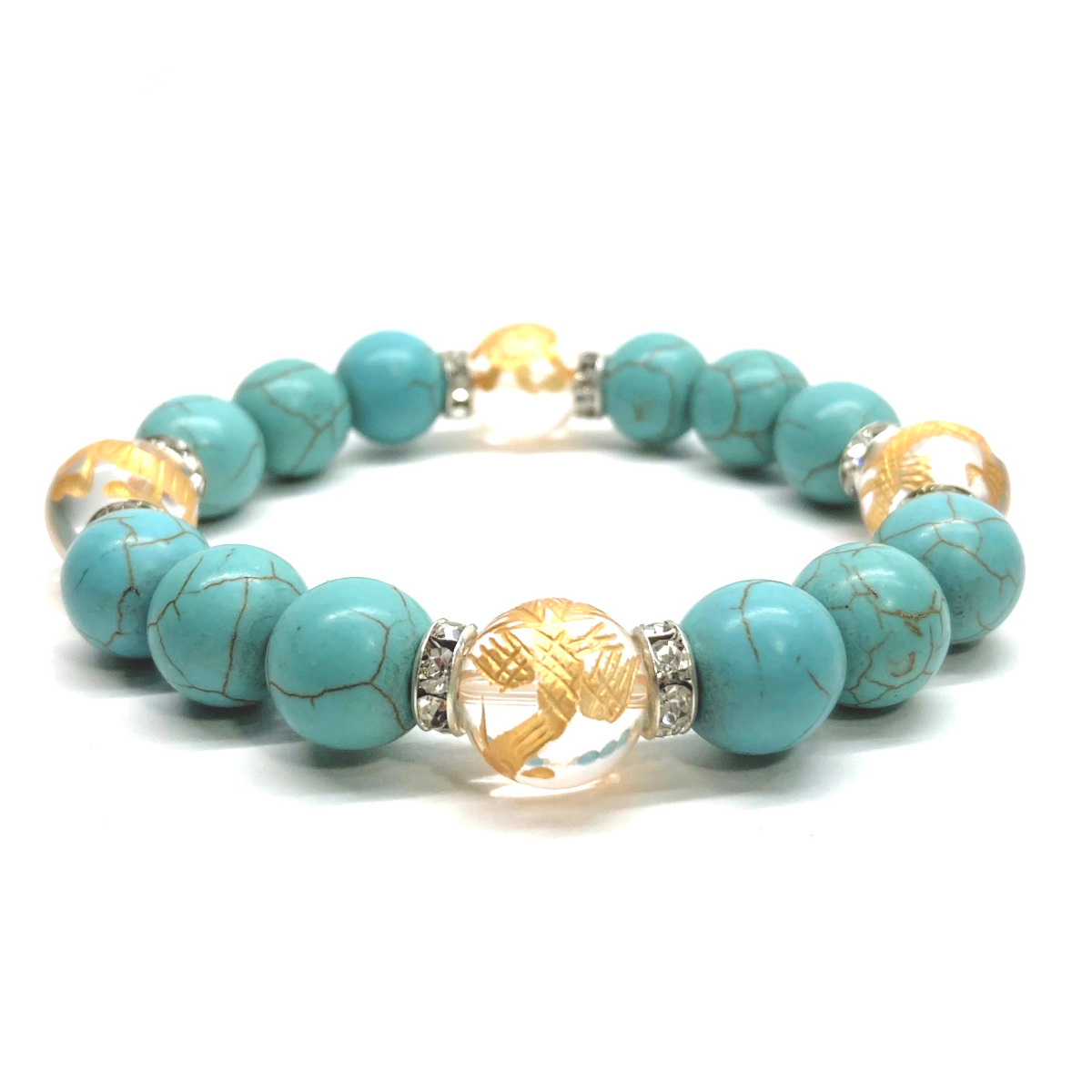 四神獣金彫水晶×ターコイズ 12mm パワーストーン ブレスレット青龍 白虎 玄武 朱雀 運気上昇 お守り 金運 健康運 四神獸 四神相応 S #2
