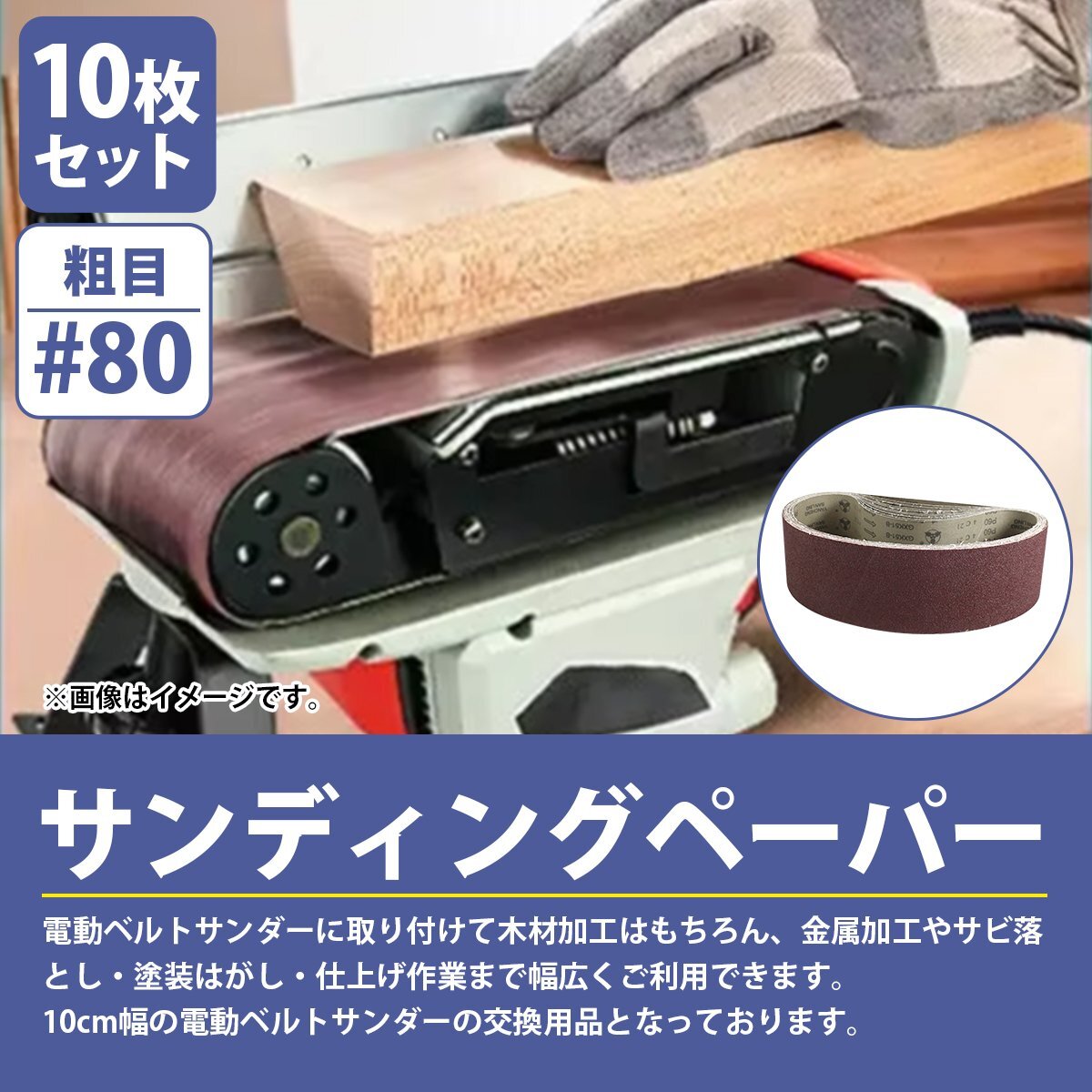 『♯80 100mm×915mm』10枚セット ベルト ペーパー 電動 ディスク サンダー 交換用 エンドレス ペーパー 金属 研磨 幅100mm