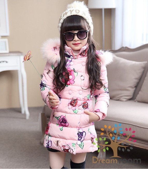 【160cm】 ダウンコート 花柄 フラワー ネイビー 子供服 アウター 女の子 中綿 ロングコート 韓国子供服