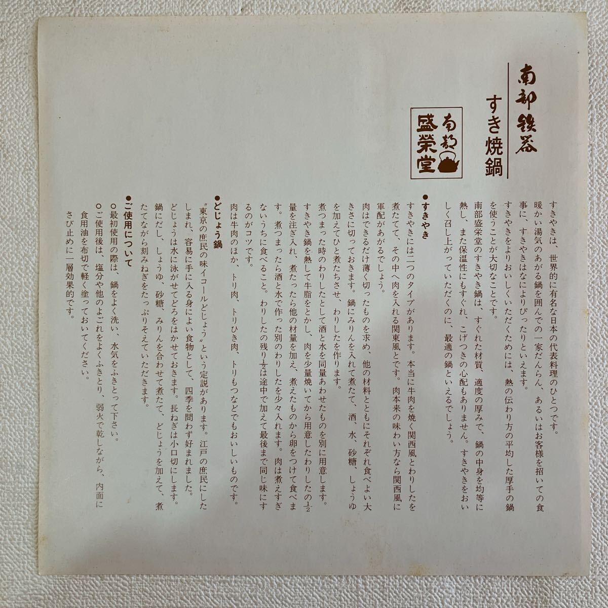 ☆南部鉄器 盛栄堂 すき焼鍋