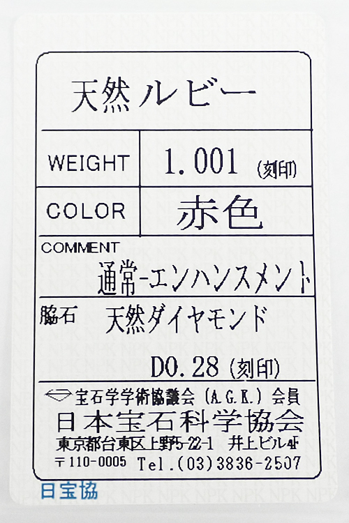 ルビーの重量1.001ct