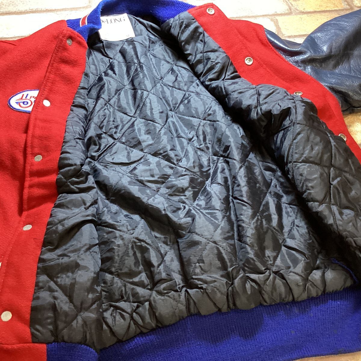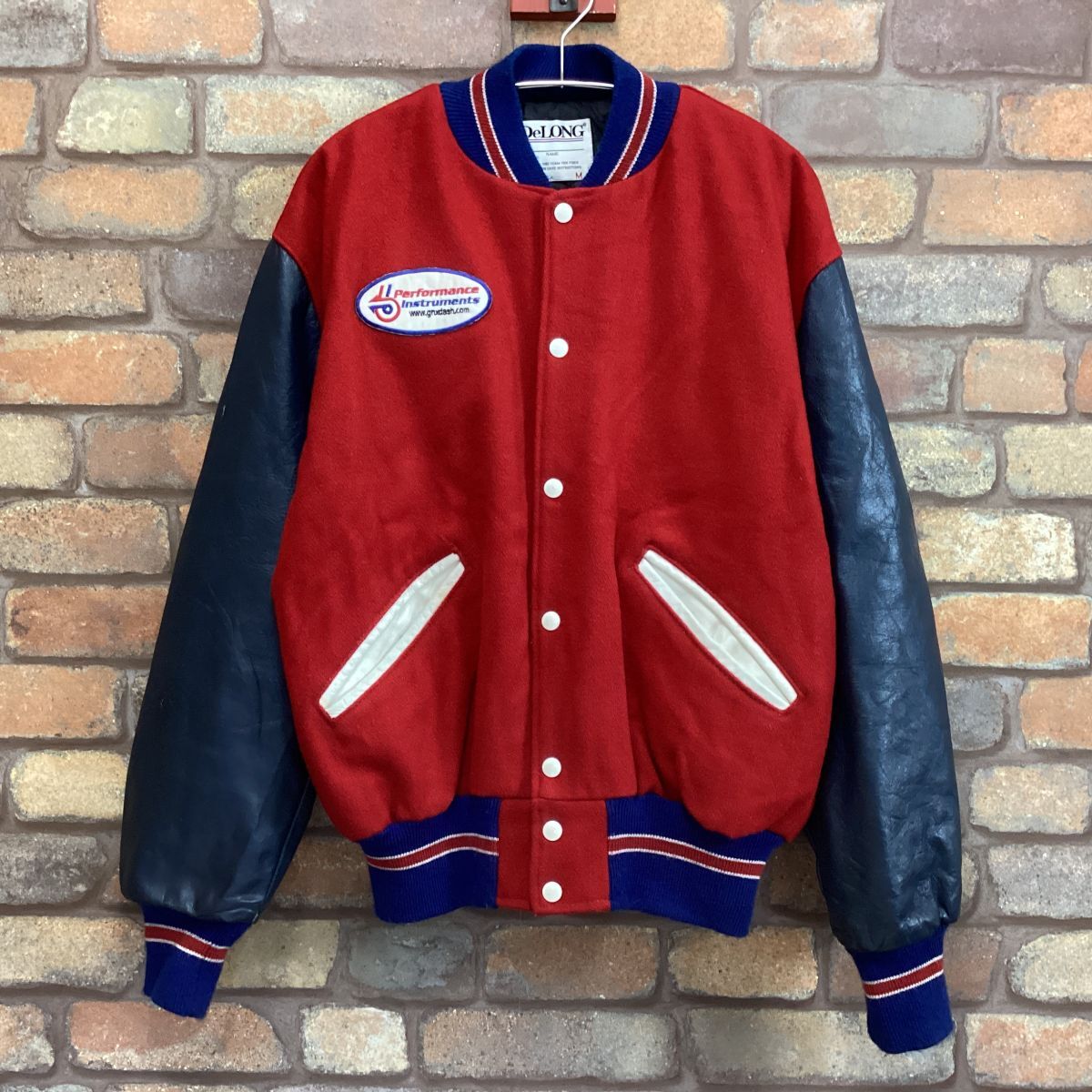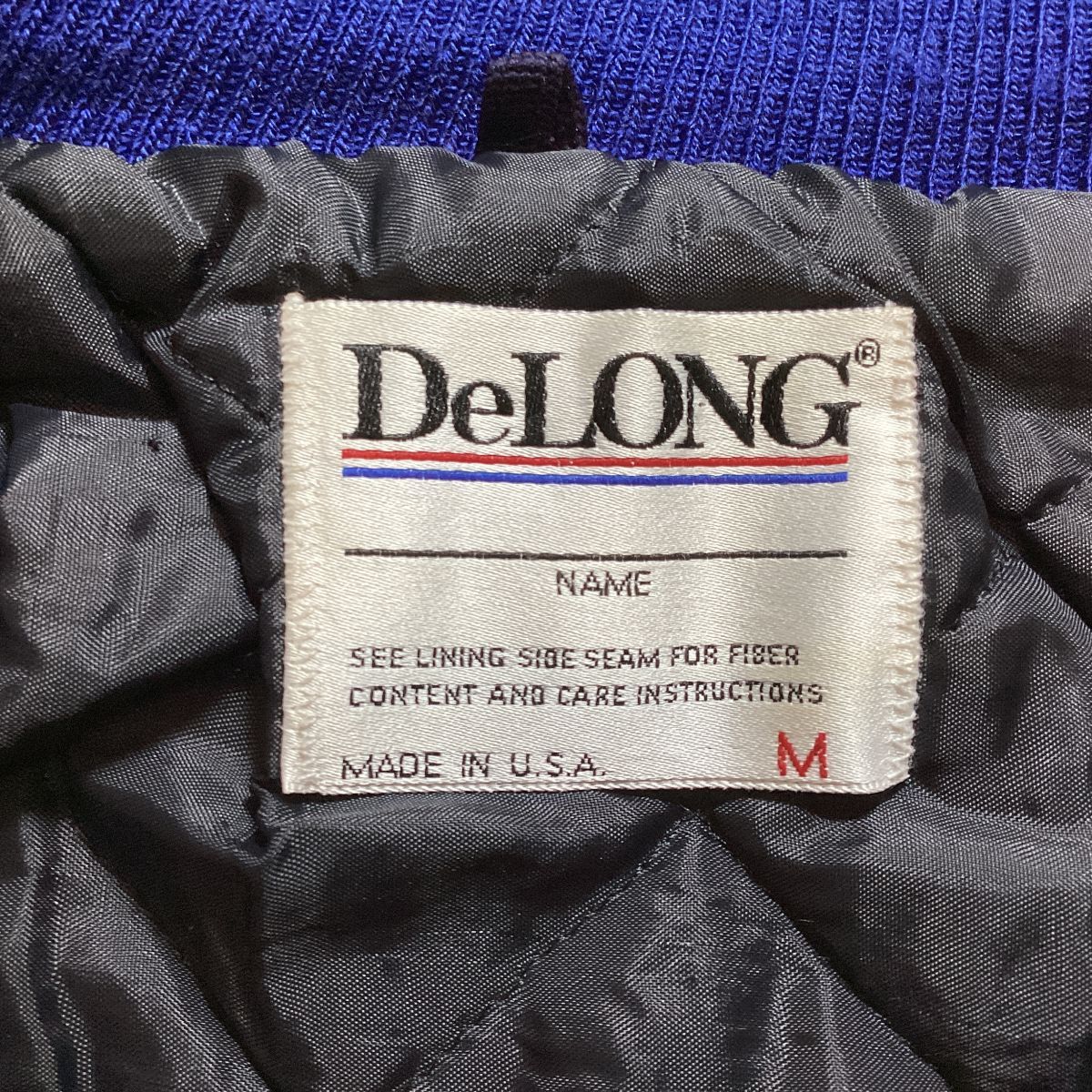 ★90’s USA製★正規品★【DeLONG デロング】ウール×レザー 中綿キルティング ワッペン付き 王道 スタジャン【メンズ M】赤 青 黒 LA1-102