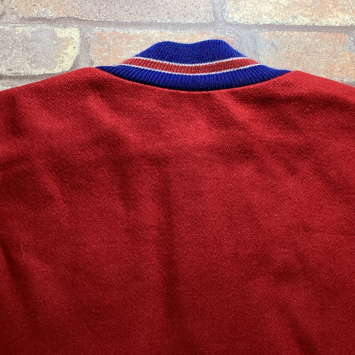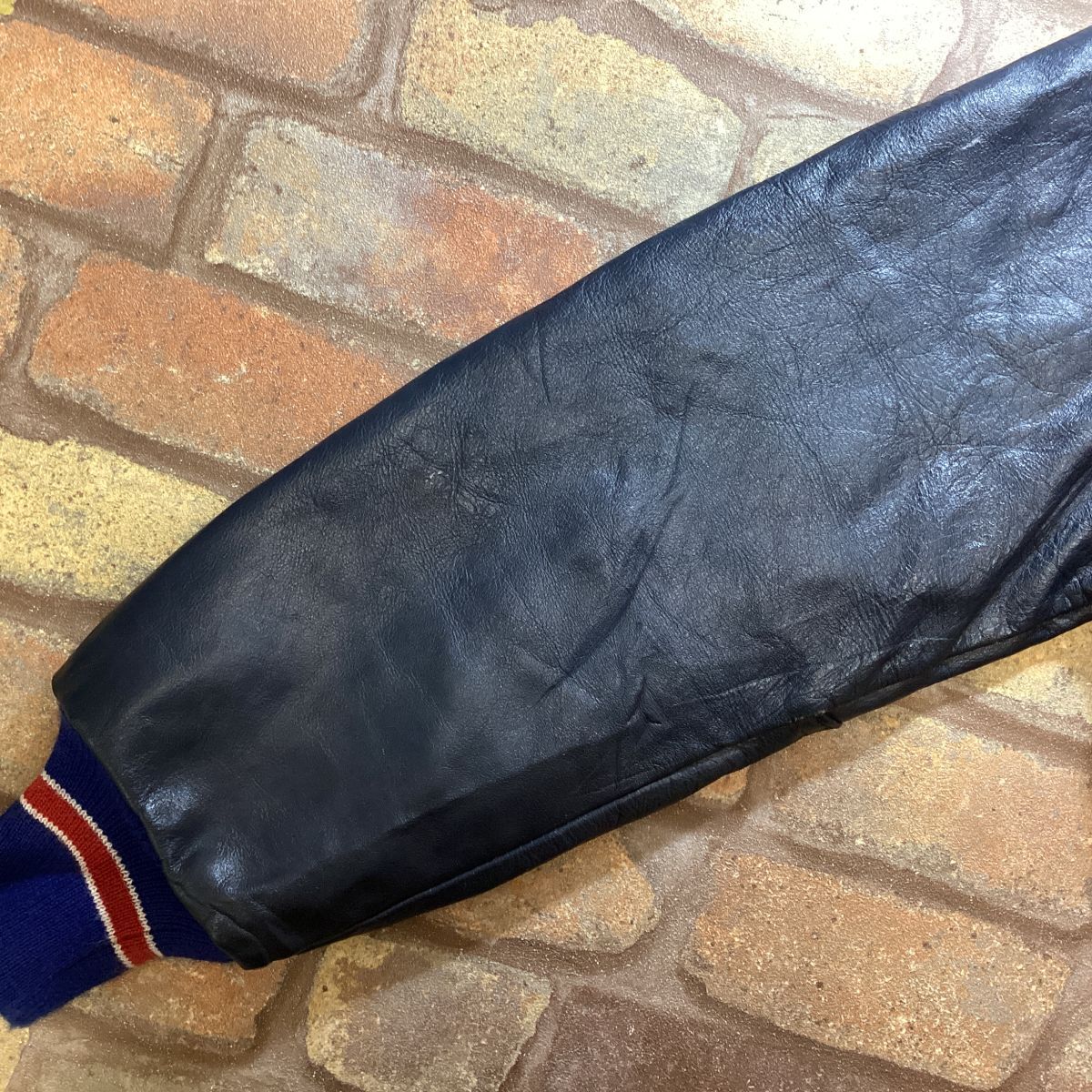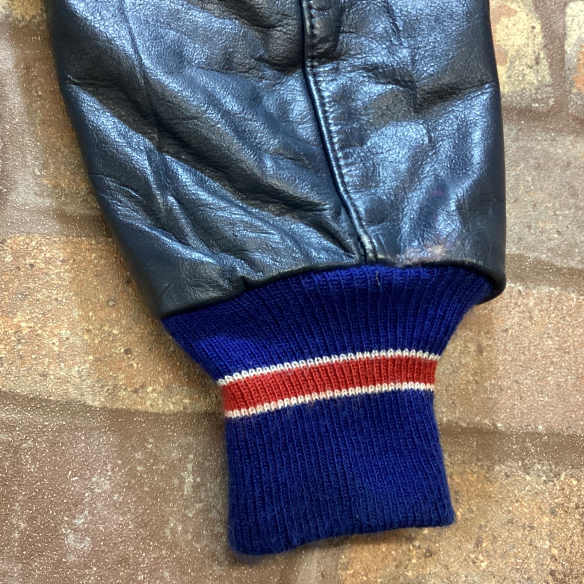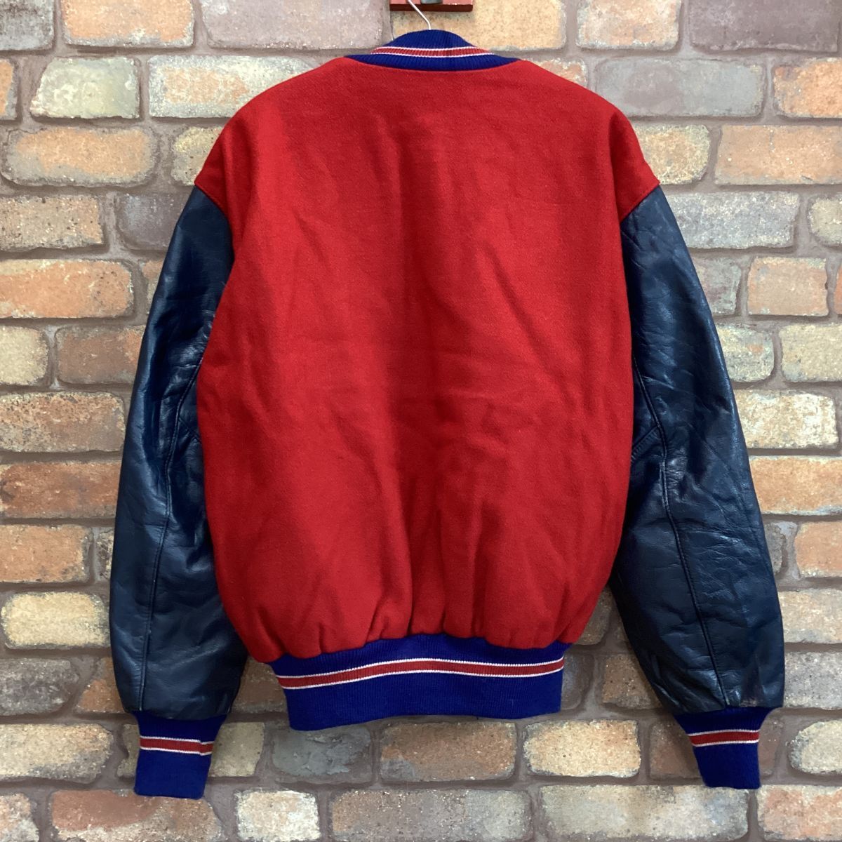 ★90’s USA製★正規品★【DeLONG デロング】ウール×レザー 中綿キルティング ワッペン付き 王道 スタジャン【メンズ M】赤 青 黒 LA1-102