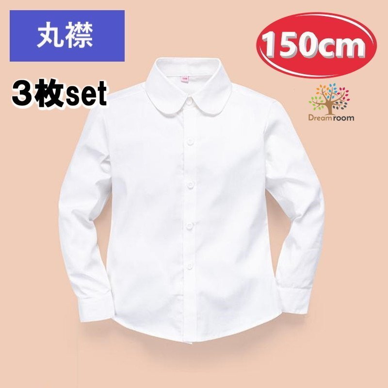 1スタ☆お得な3枚set★綿100% 丸襟 ブラウス【150cm】ワイシャツ 白シャツ 学生服 フォーマル 冠婚葬祭 制服