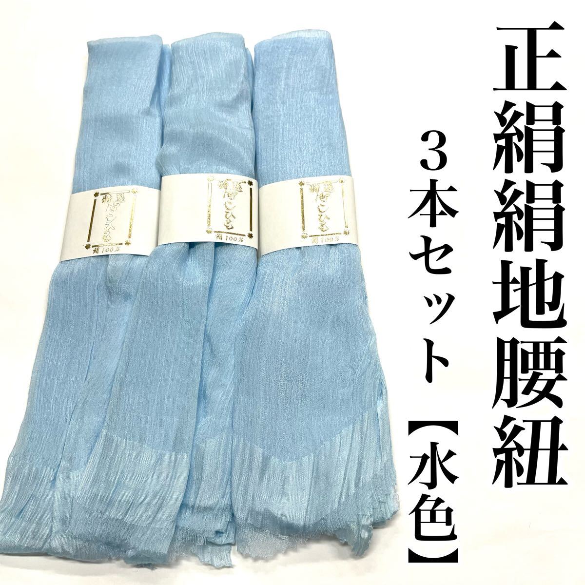 縦シボ 幅広 正絹腰ひも 3本セット 絹地 楊柳 正絹 腰紐 腰帯 きんち こしひも 絹 正絹腰紐 水色