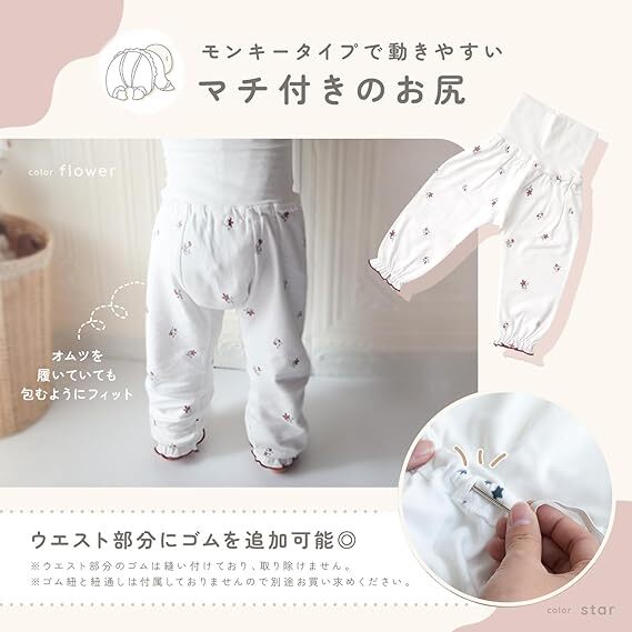 • 【伸縮性】腹巻部分に伸縮性があり、赤ちゃんの動きを妨げずにお腹をしっかり覆う。