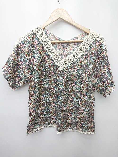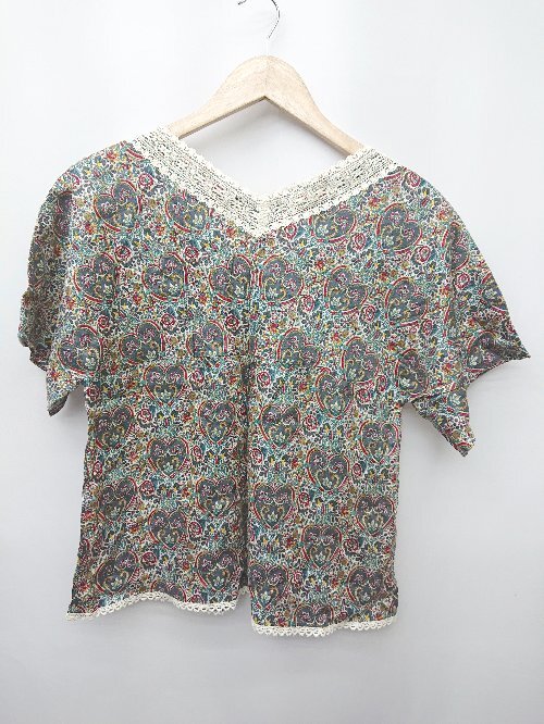 ◇ ⊂ KUMIKYOKU 組曲 総柄 半袖 カットソー サイズ2 グリーン マルチ レディース P