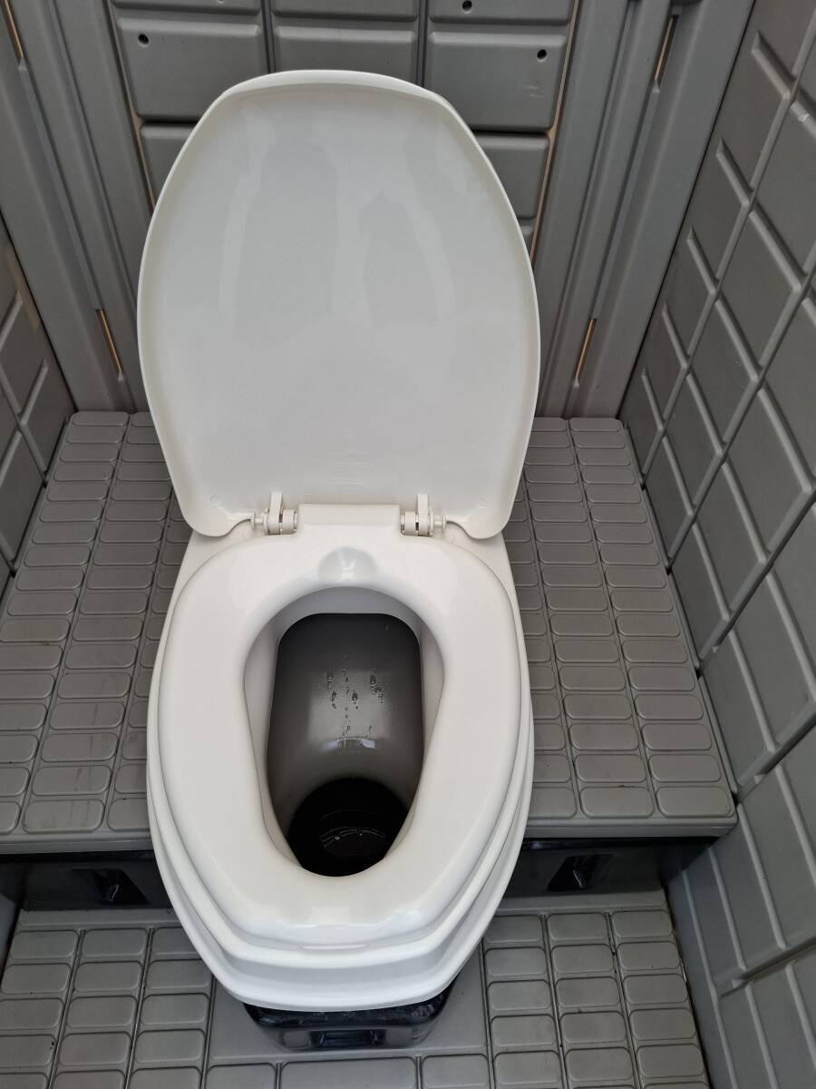 中古 本水洗 洋式(新品被せ式) 仮設トイレ 水洗式 .サイズ 横幅870×奥行1,550×高さ2,580 格安配送 洋式 水洗 仮設