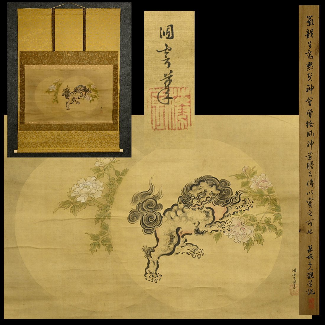 【永】b146【兵庫県の図書館や博物館の館長を歴任された歴史研究家遺族委託品】掛軸 狩野洞雲益信 筆頭江戸幕府御用絵師 牡丹獅子 日本画
