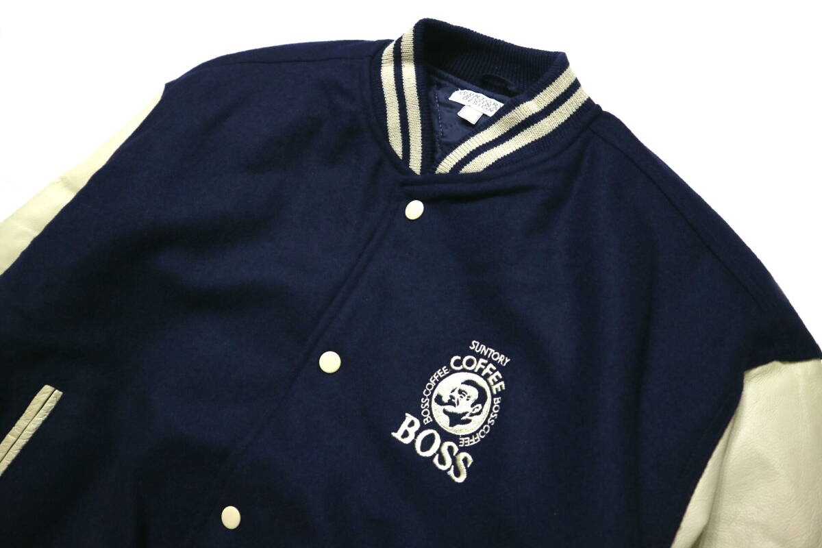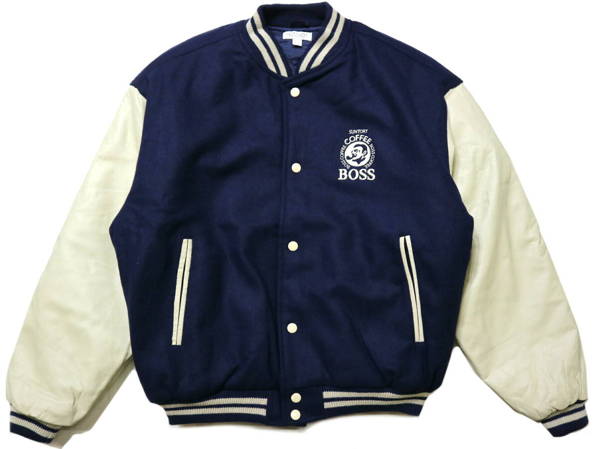 訳あり(保管シワ)/概ね美品!◆サントリーBOSS ボスジャン 袖革スタジャン◆Mサイズ相当