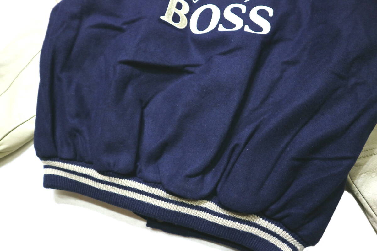 訳あり(保管シワ)/概ね美品!◆サントリー BOSS ボスジャン 袖革スタジャン◆Mサイズ相当(身長171-174センチ位)