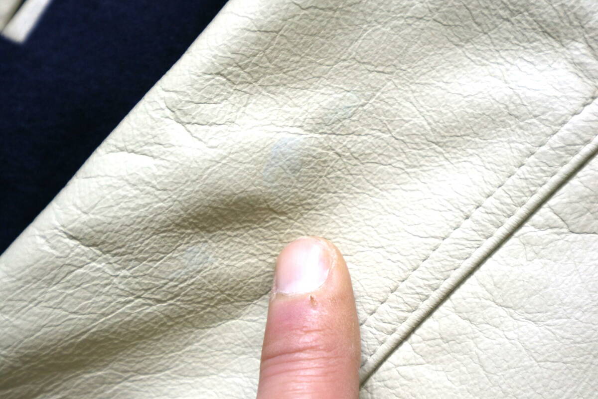 ・前述、半折り保管時の若干の折り目やしわ感、左袖にほんの微かな色ムラ箇所1つはありますが、特に問題となるダメージや目立つ汚れなどもなくしっかりとした程度の良い状態です。