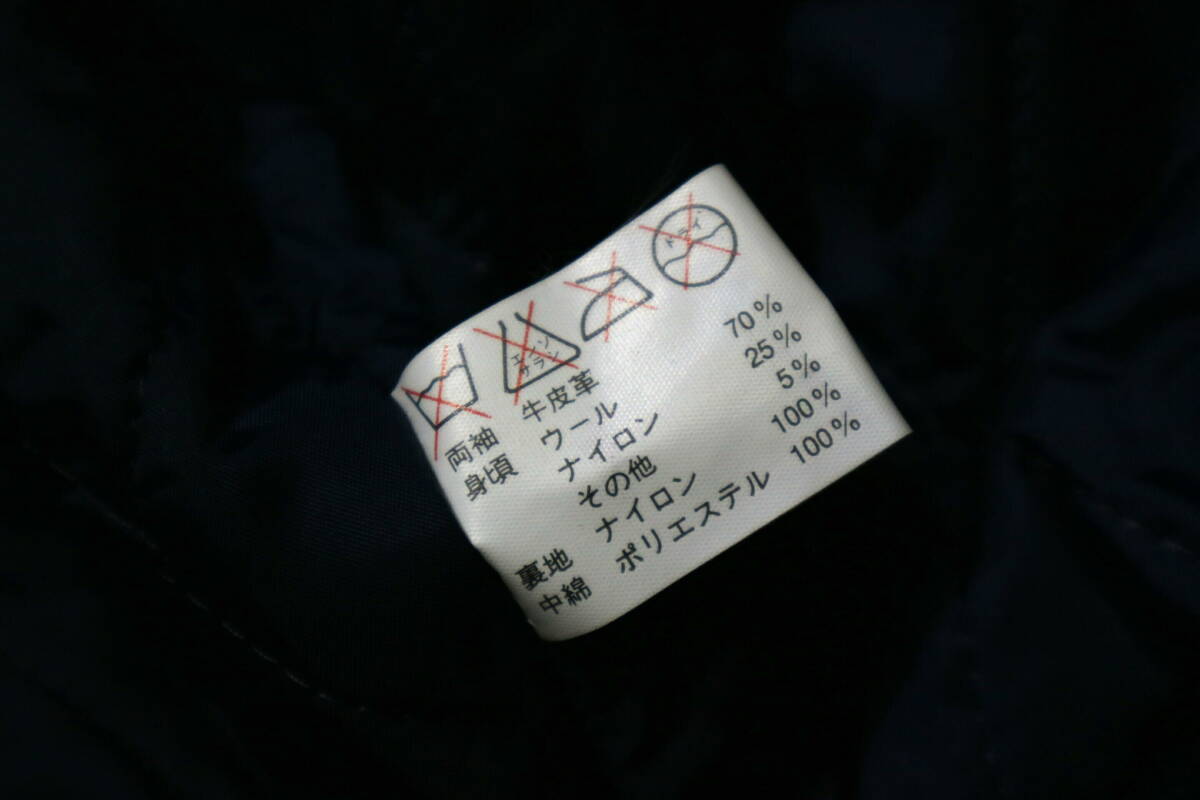 ・中厚の程よくソフトで着心地の良いメルトン生地と袖牛革の組み合わせ、袖革に刺繍ロゴの安心で雰囲気の良い作りです。サントリーBOSSの袖革スタジャンです。
