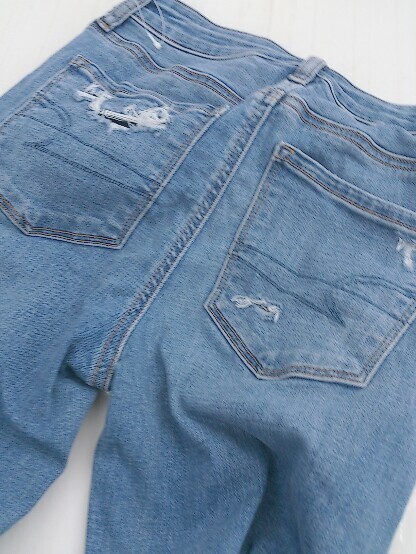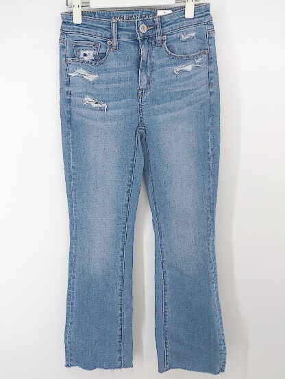 ◇ AMERICAN EAGLE OUTFITTERS ダメージ加工 ストレッチ フレア ジーンズ デニム パンツ サイズ US 2 ブルー レディース P