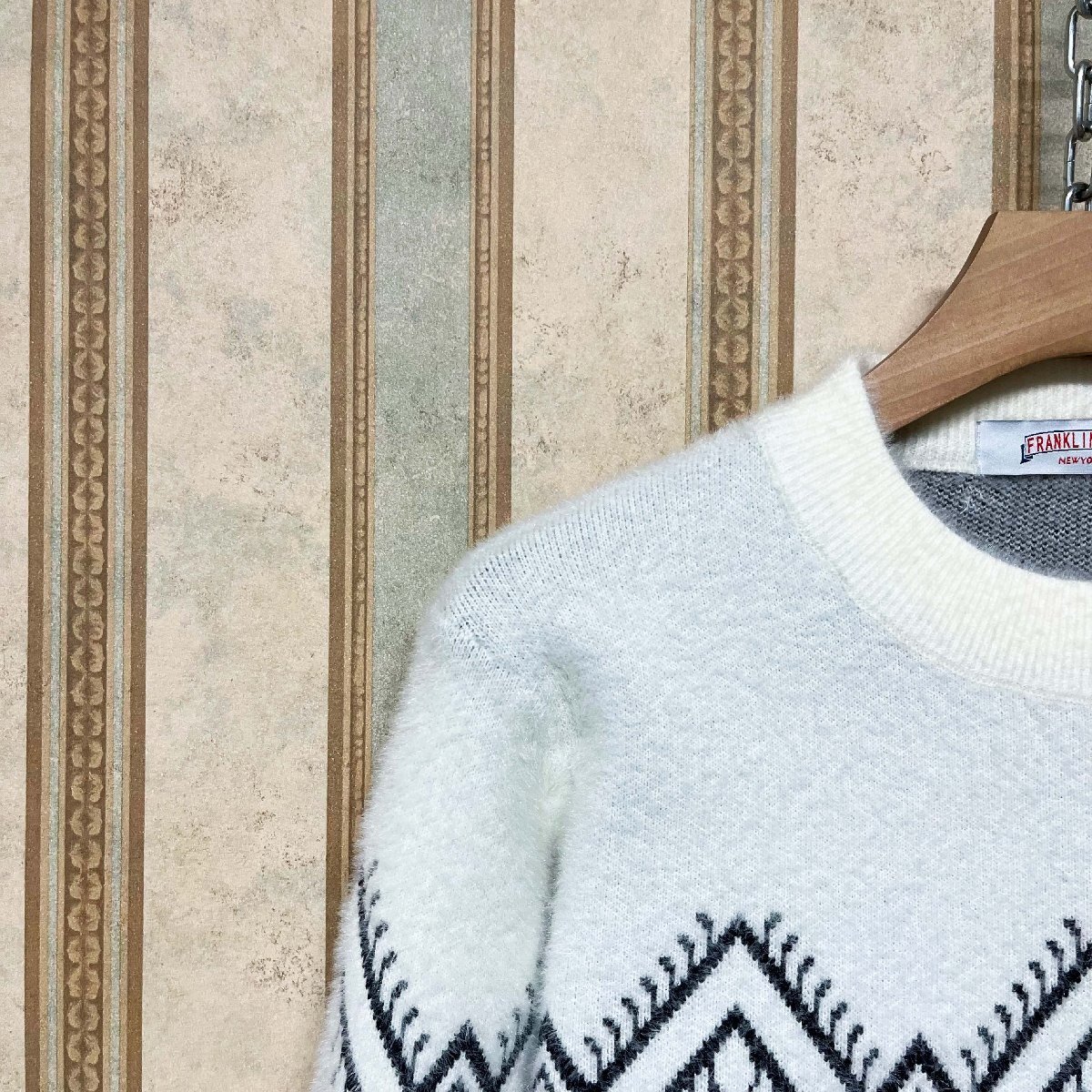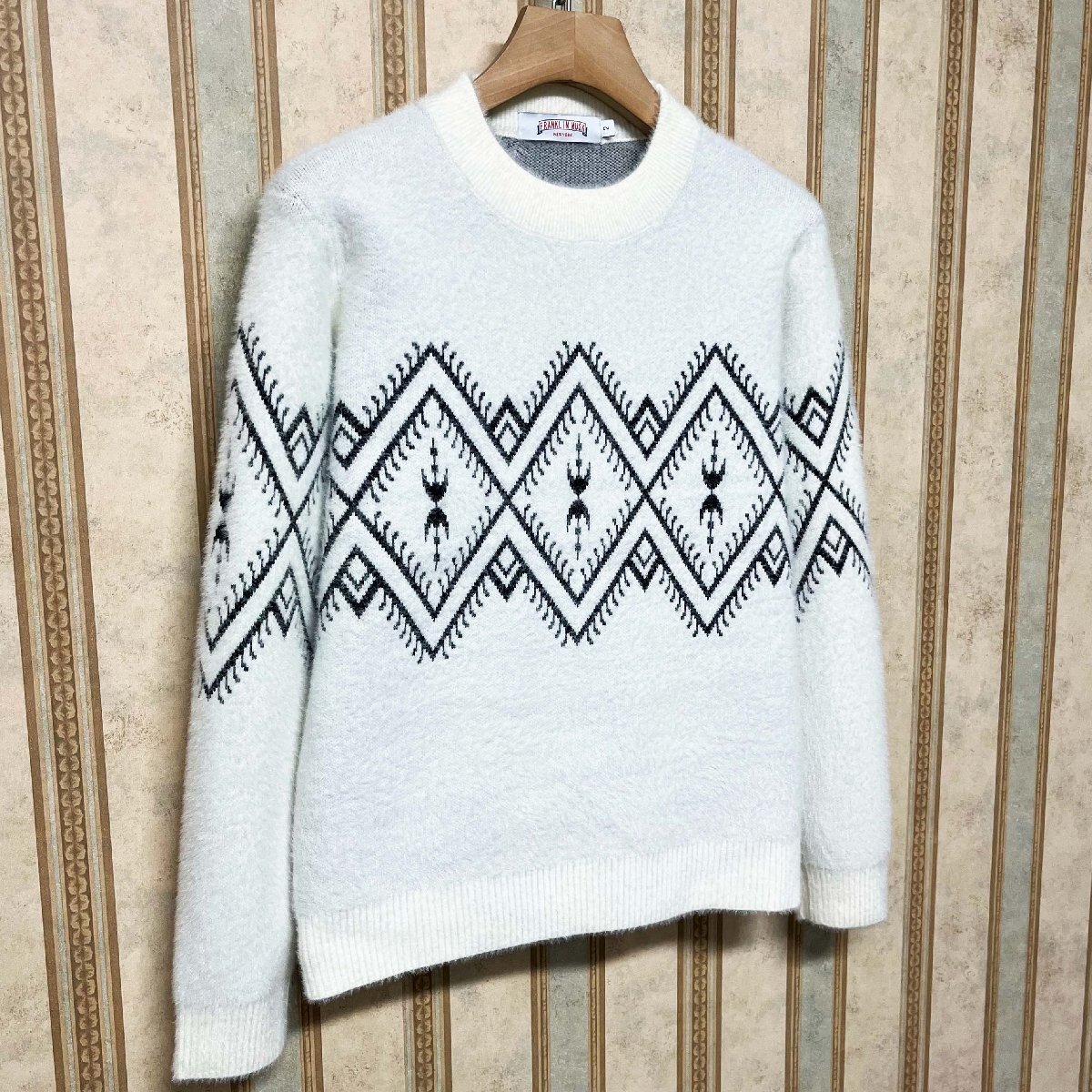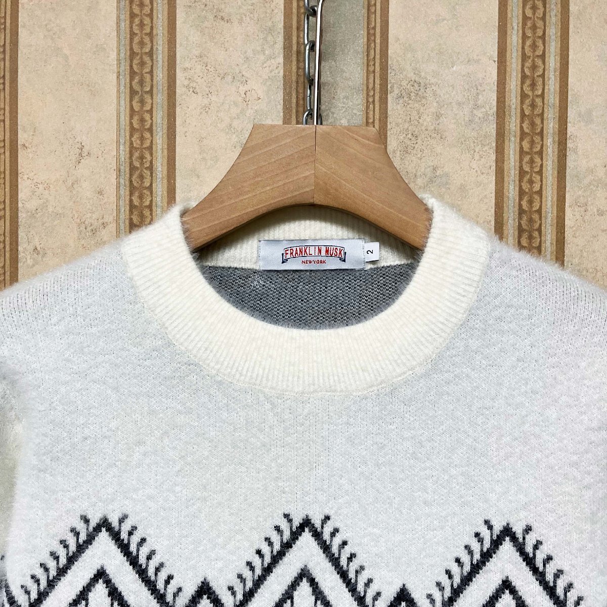 高級 定価5万 FRANKLIN MUSK・アメリカ・ニューヨーク発 上質カシミヤ混 柔らかい ニット アーガイル柄 トレーナー カジュアル サイズ4