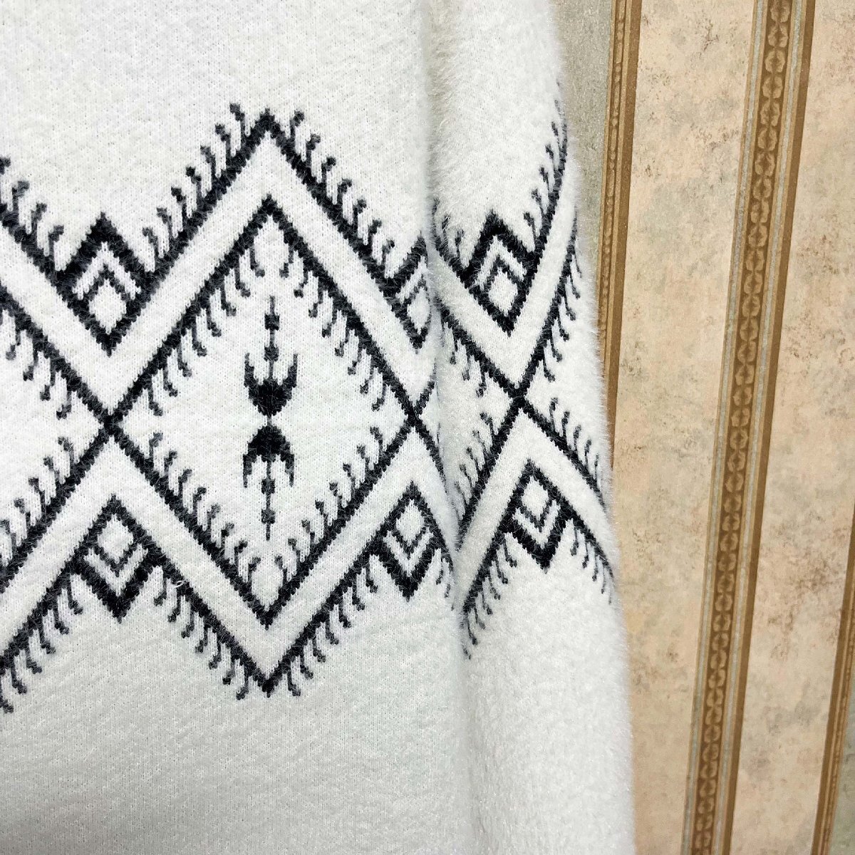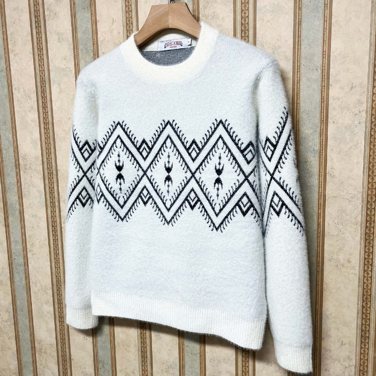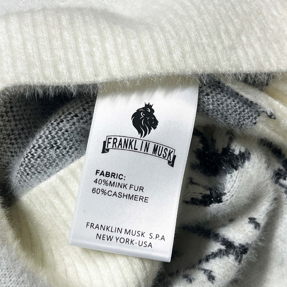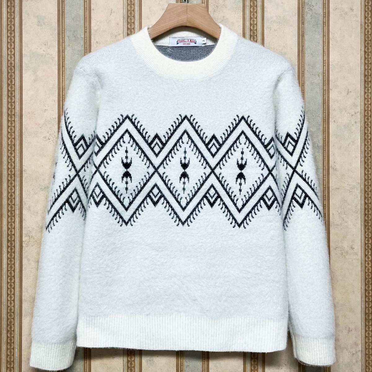 高級 定価5万 FRANKLIN MUSK・アメリカ・ニューヨーク発 上質カシミヤ混 柔らかい ニット アーガイル柄 トレーナー カジュアル サイズ4